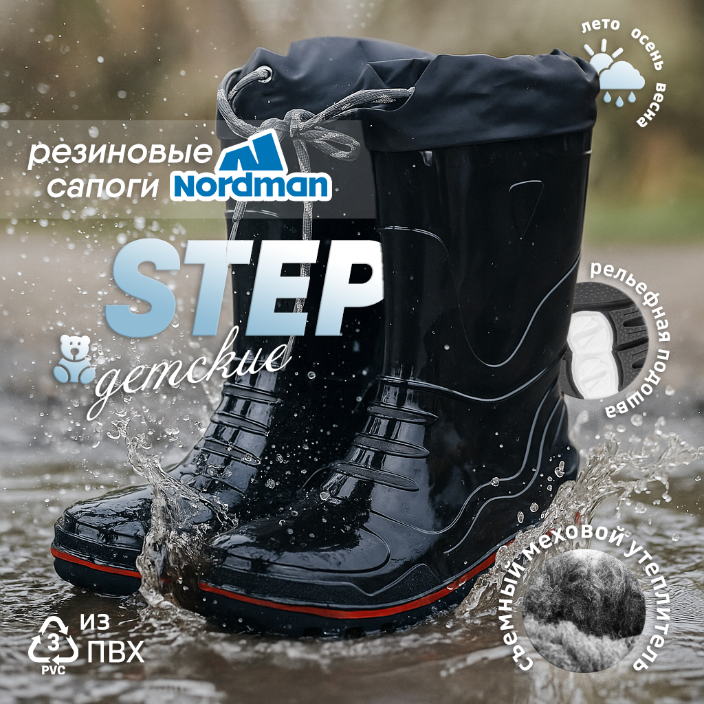 Детские резиновые сапоги Nordman Step с манжетой и меховым вкладышем.