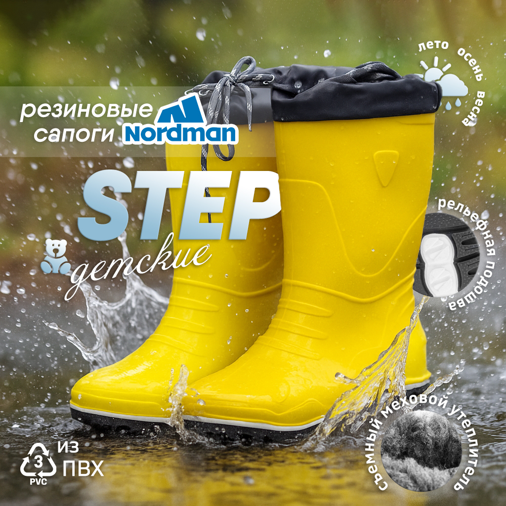 Детские резиновые сапоги Nordman Step с манжетой и меховым вклыдышем.