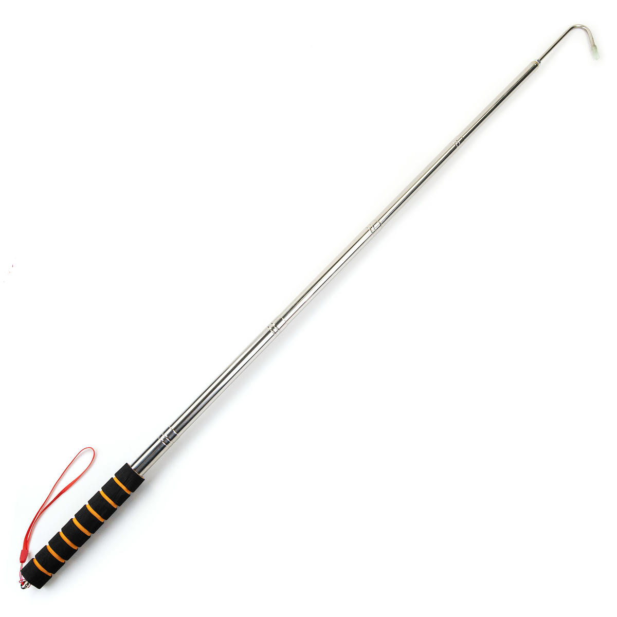 Благодаря надежной телескопической конструкции, габариты багра можно варьировать, что уместно при ловле с лодки. Для безопасности на крюке предусмотрен силиконовый футляр.