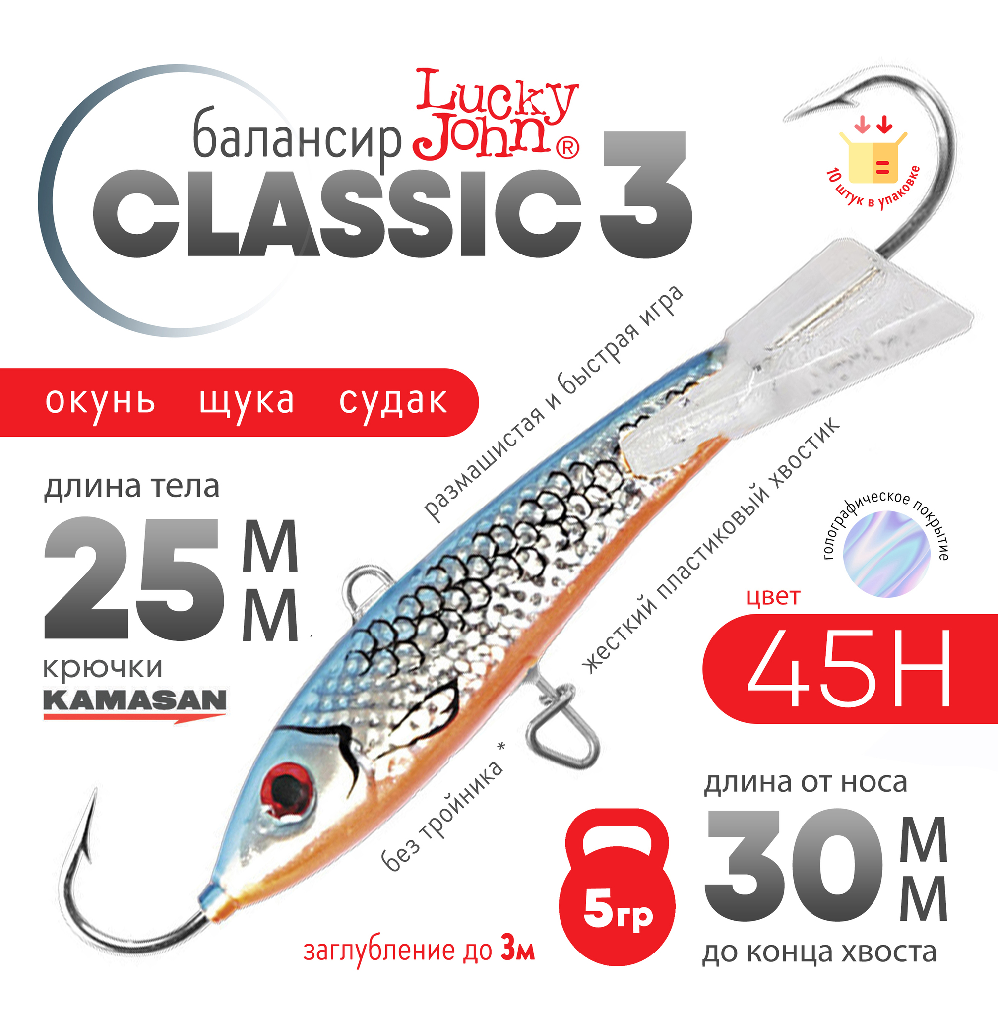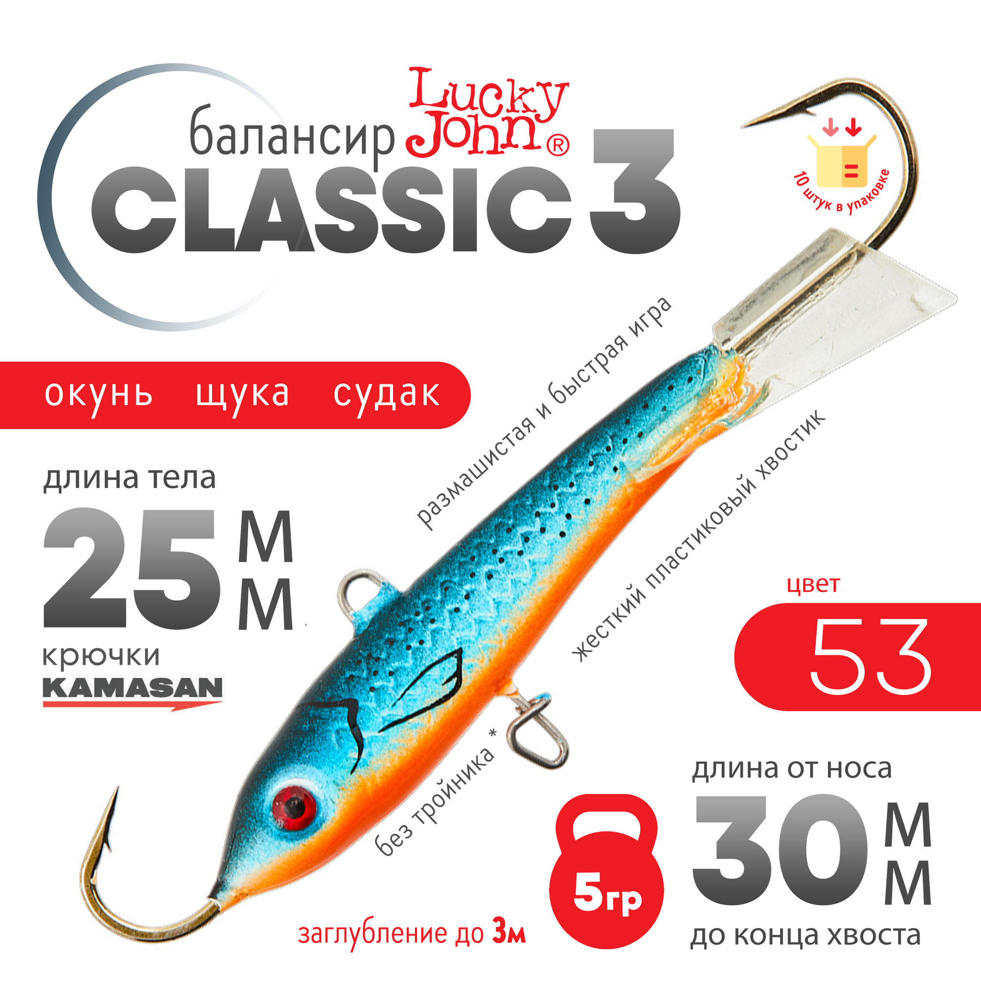 Lucky John Classic - самая популярная модель балансиров среди рыболовов. Жёсткий пластиковый хвостик придаёт приманке более размашистую и быструю игру. Во время активности хищника, с этими приманками можно добиться наилучших результатов.