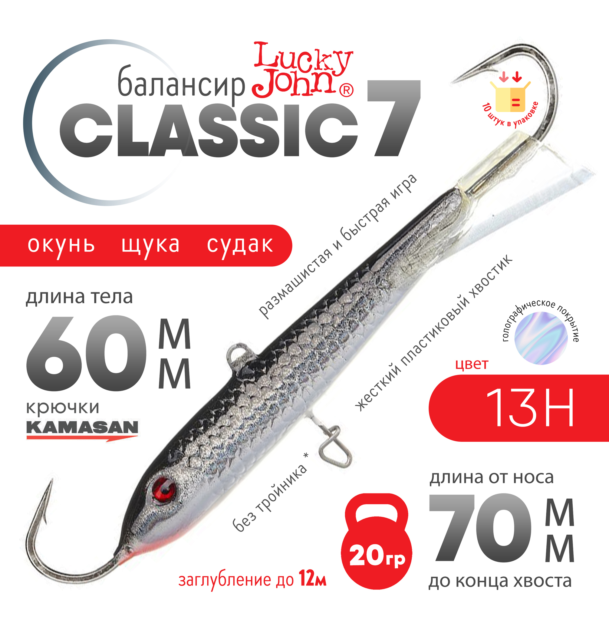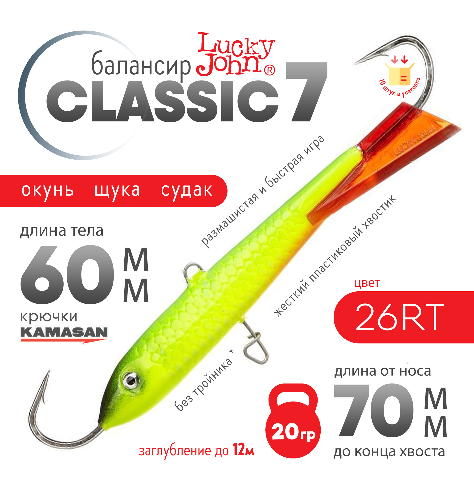 Lucky John Classic - самая популярная модель балансиров среди рыболовов. Жёсткий пластиковый хвостик придаёт приманке более размашистую и быструю игру.