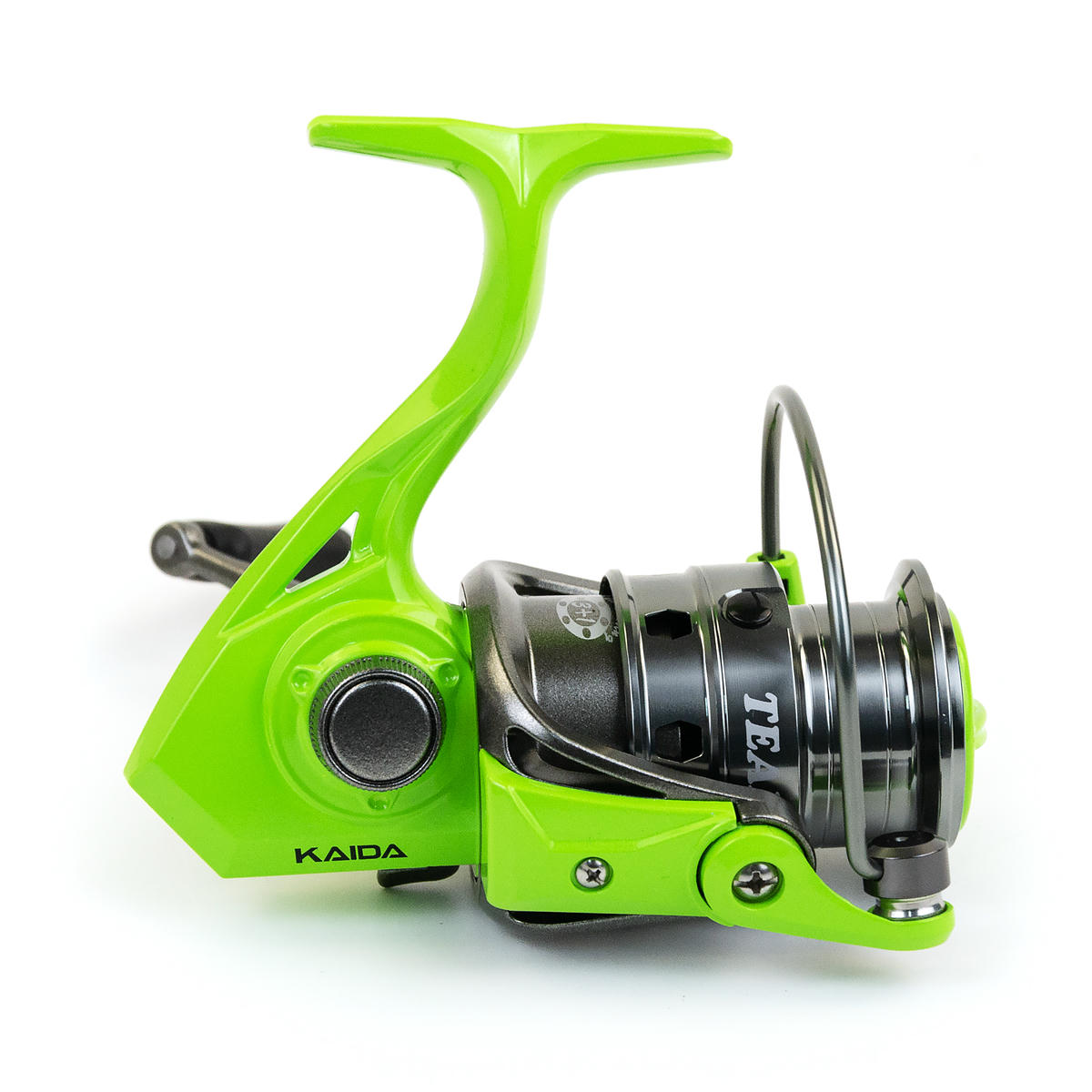 Безынерционная рыболовная катушка Kaida TEAM-PLUS обладает надежным механизмом и устройством тормоза обратного хода, что делает ее идеальным выбором для любого вида ловли. Она имеет передний фрикцион и регулятор, что позволяет легко настроить силу тормоза.