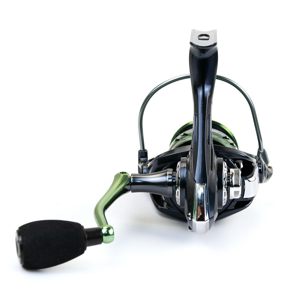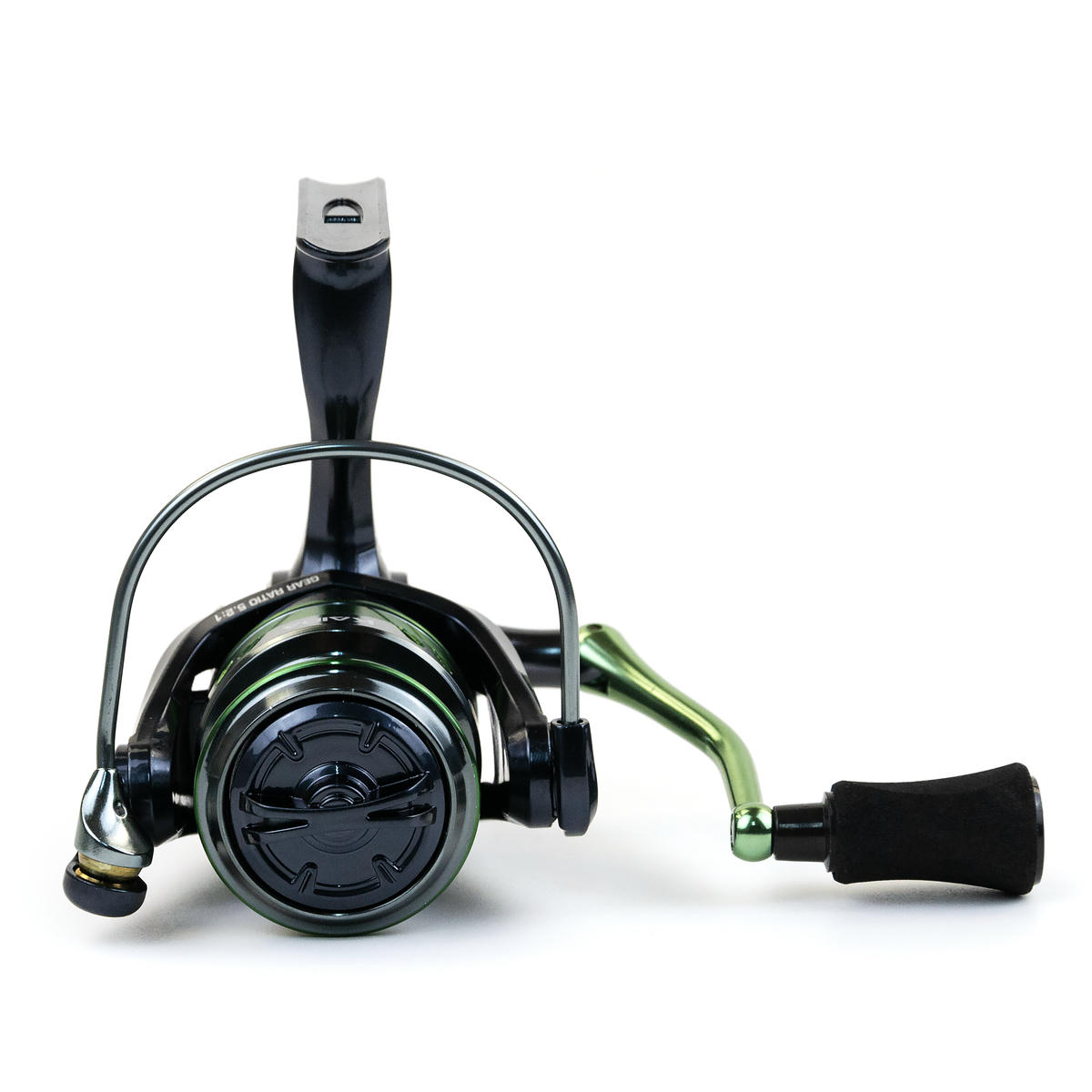Планетарный тип механизма в катушке обеспечивает качественную укладку лески, а ролик лесоукладывателя специальной геометрии предотвращают её запутывание и перекручивание. Ручка фиксируется с помощью прижимного винта, что позволяет настроить её под себя, переставив под левую или правую руку. Присутствует стопор обратного хода.