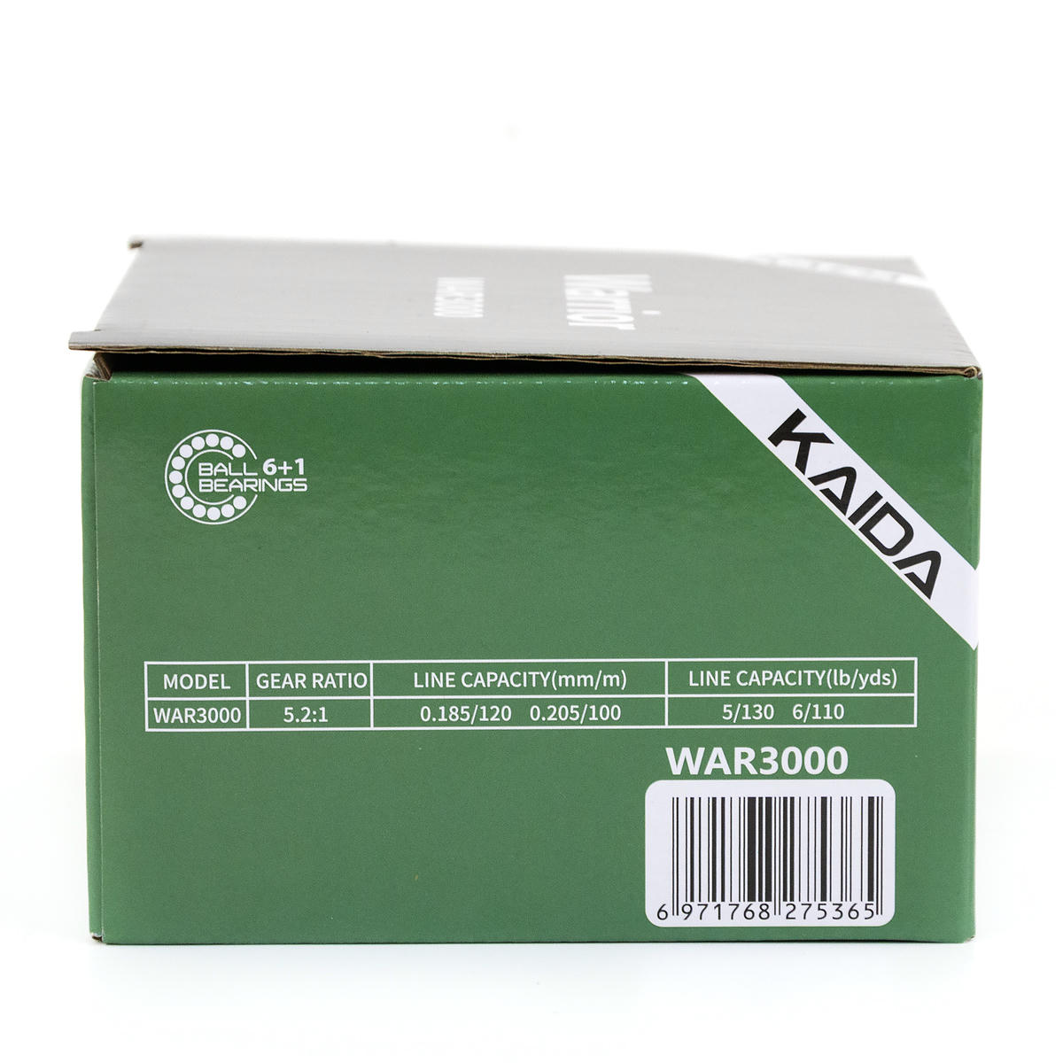 Корпус катушки выполнен из лёгкого, но прочного материала, надёжно защищающего внутренний механизм от повреждений. Катушка Kaida Warrior обладает отлично сбалансированным ротором, который обеспечивает плавное вращение без биений и шума. Алюминиевая шпуля типа Air Spool имеет защитное покрытие бортика. Шесть высококачественных шариковых и один роликовый подшипник обеспечивают отменную плавность хода. Все механизмы катушки Кайда Вариор спроектированы с учетом серьезных ударных и тяговых нагрузок, которых просто не избежать при ловле на донные оснастки. Передний фрикцион катушки особенно актуален для спиннинговой ловли, так как отличается большой чувствительностью.
