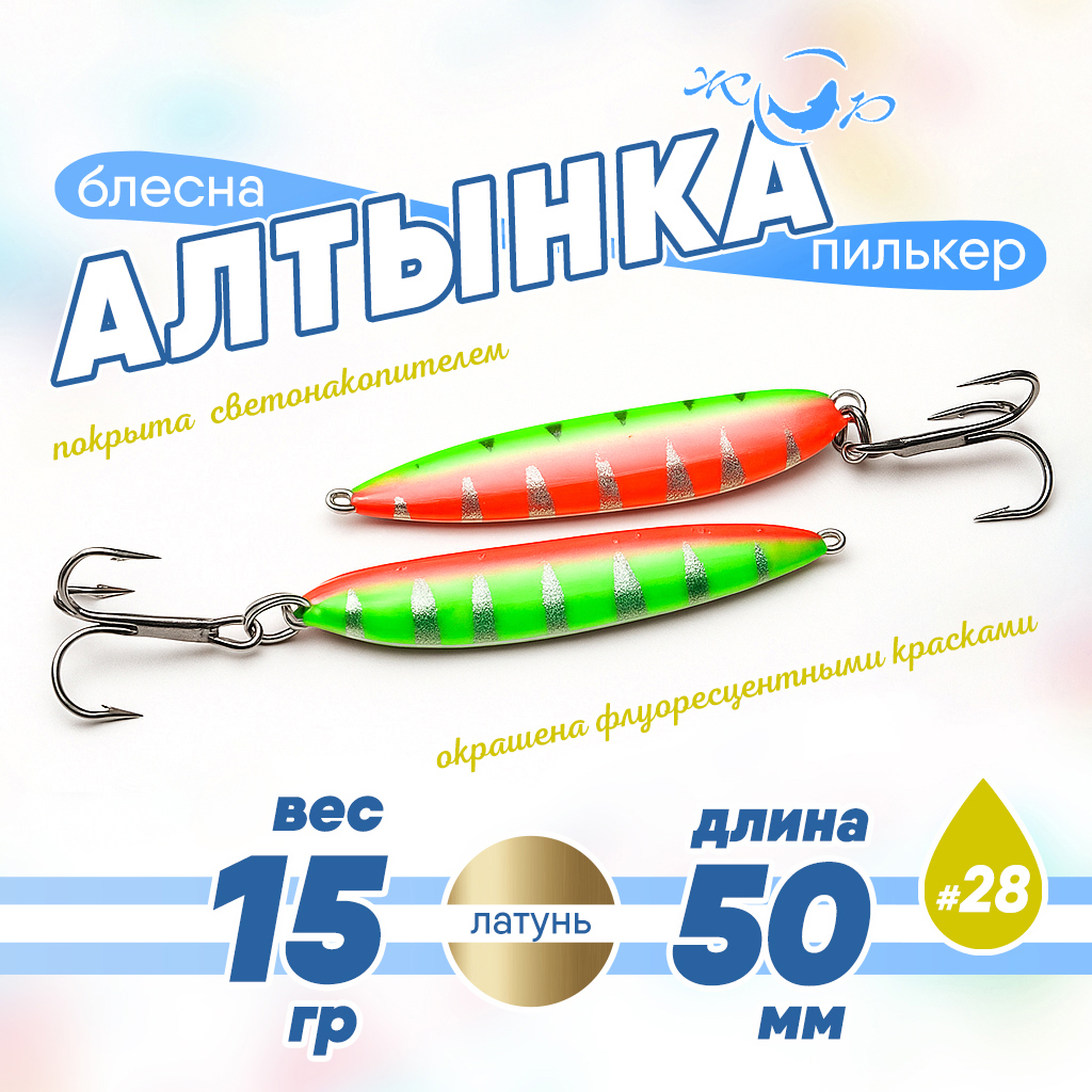 Блесна (пилькер) ЖОР "Алтынка" цветная с тройником (50мм, 15гр), Латунь