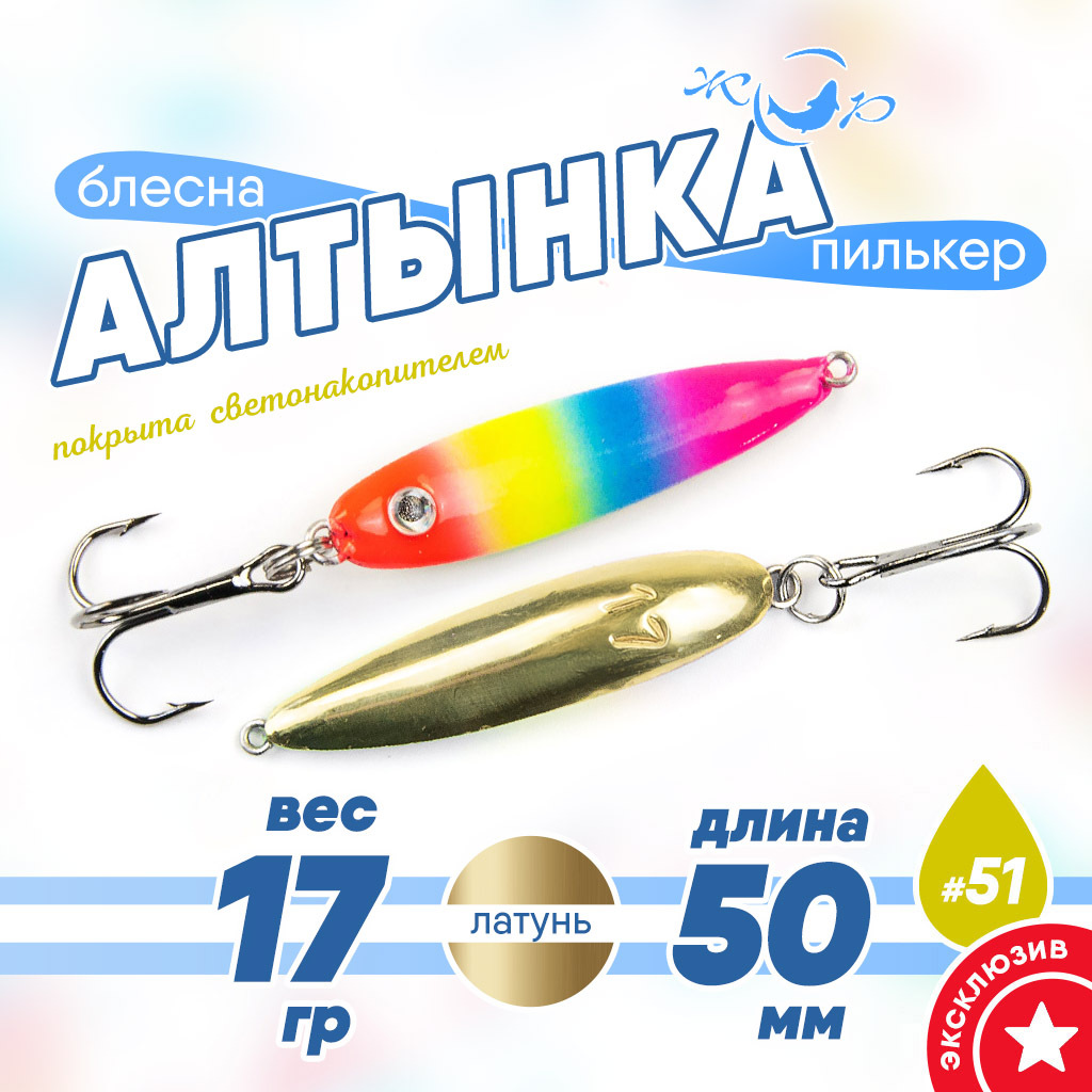Блесна (пилькер) ЖОР "Алтынка" цветная с тройником (50мм, 17гр), Латунь