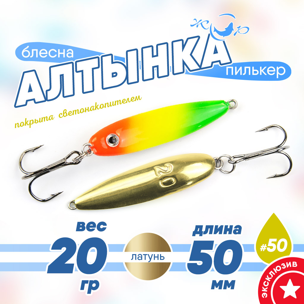 Блесна (пилькер) ЖОР "Алтынка" цветная с тройником (50мм, 20гр), Латунь
