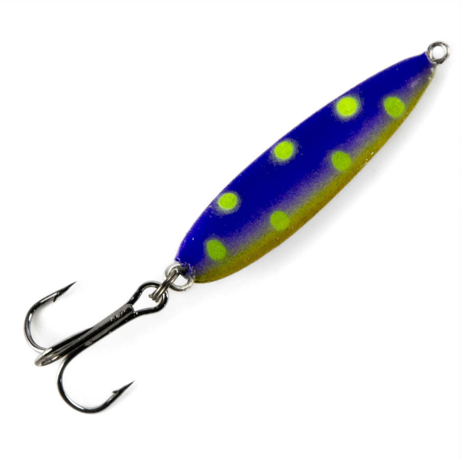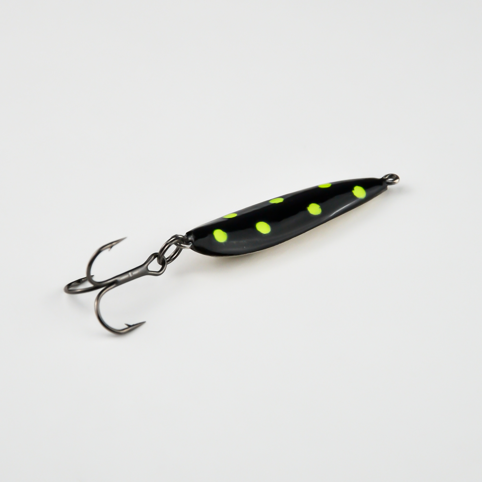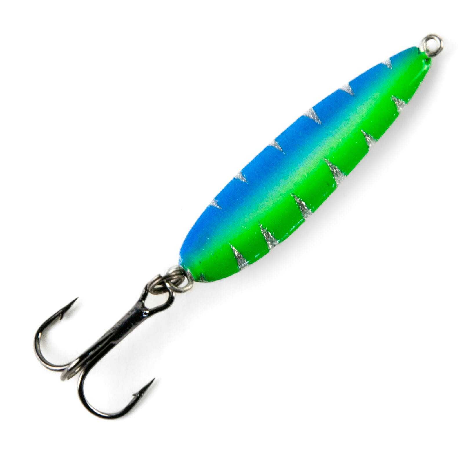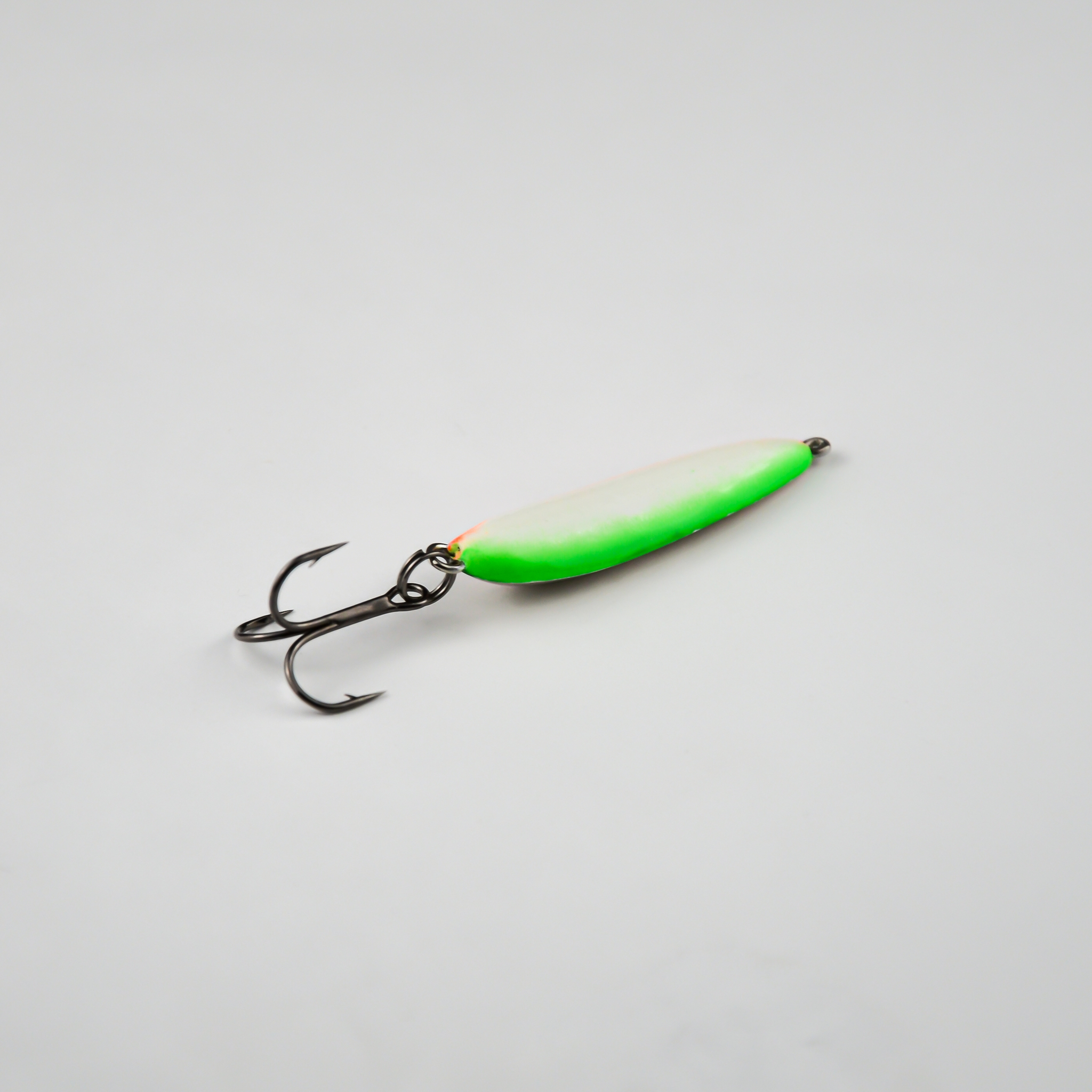 Одна сторона приманки изготовлена из пластины цветного металла (нейзильбер или латунь), вторая покрыта светонакопителем (кроме цветов №3 и №4) и окрашена флуоресцентными красками.