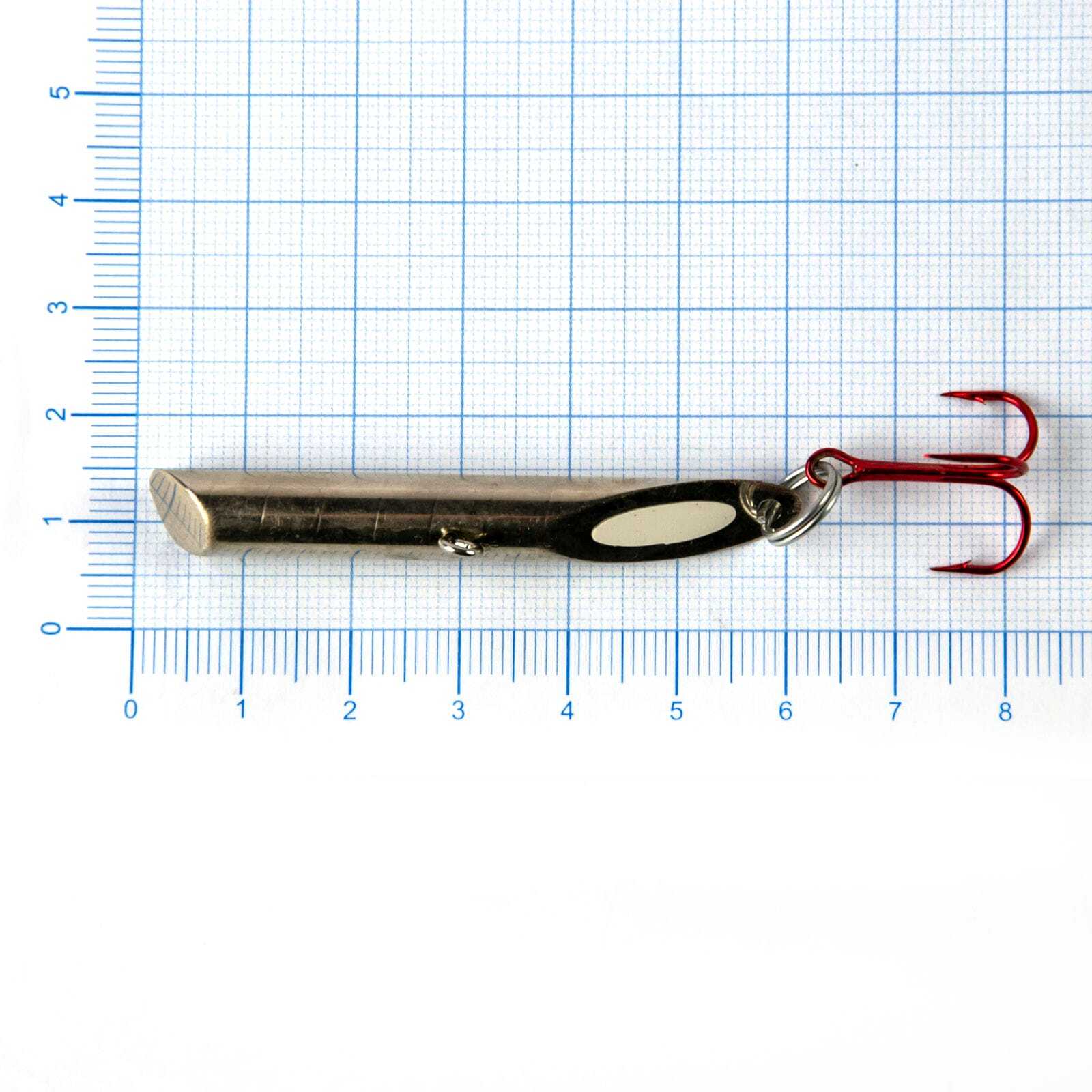 Классический спил из прутка латуни, где на более остром конце крепится тройник. Изготавливается из круглого прута латуни или никеля. Приманка отлично работает по хищнику в отвес как летом так и зимой, особенно с подсадкой червя или малька.