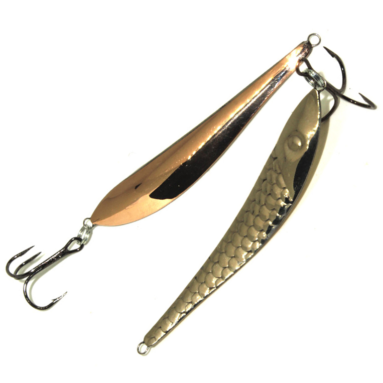 Блесна «Тюлька-2ЦМ» со сведёнными коронками из двух металлов- была и остаётся мечтой каждого рыбака. Кривизна тела блесны позволяет ей уходить в сторону и плавно колебаться, что привлекает речного хищника.