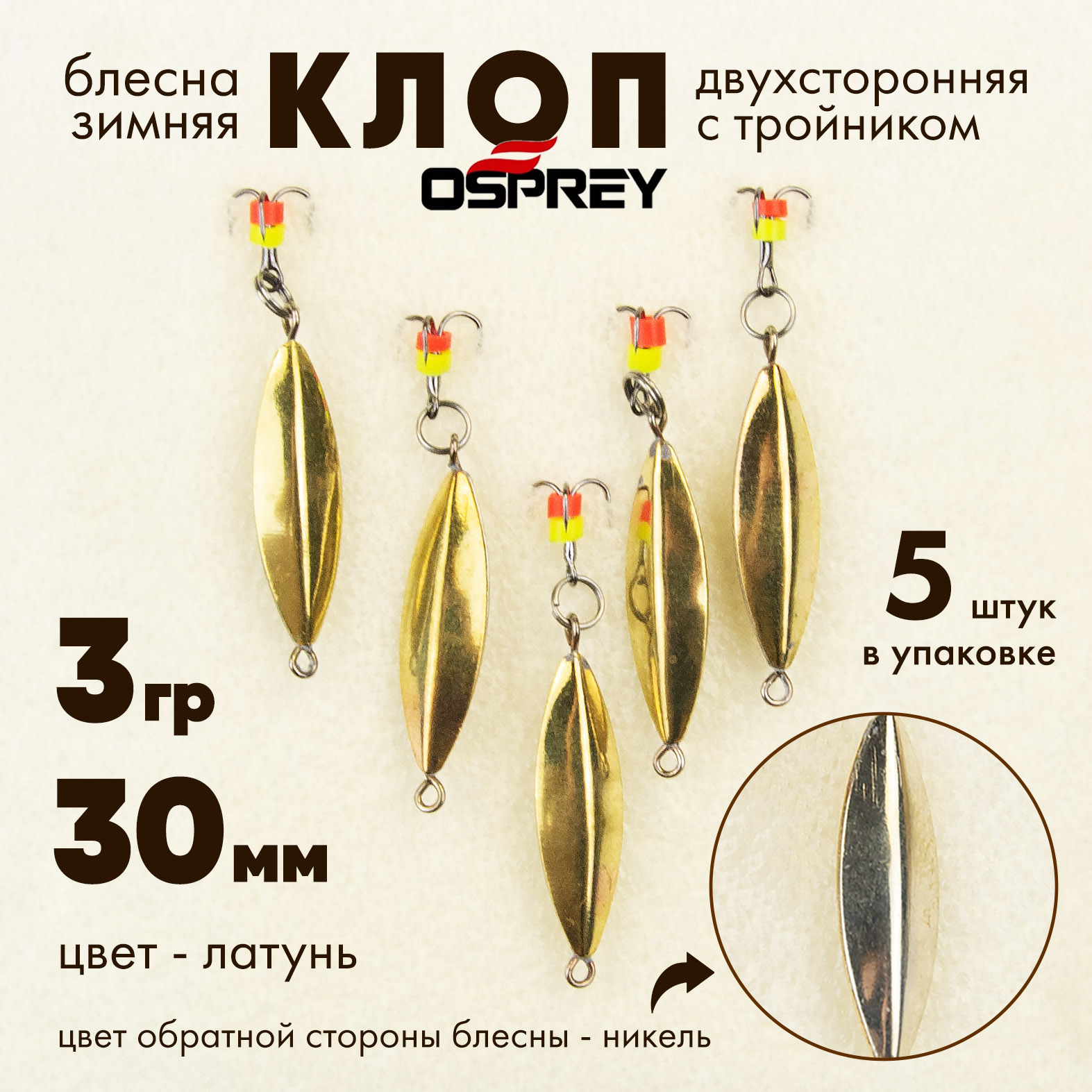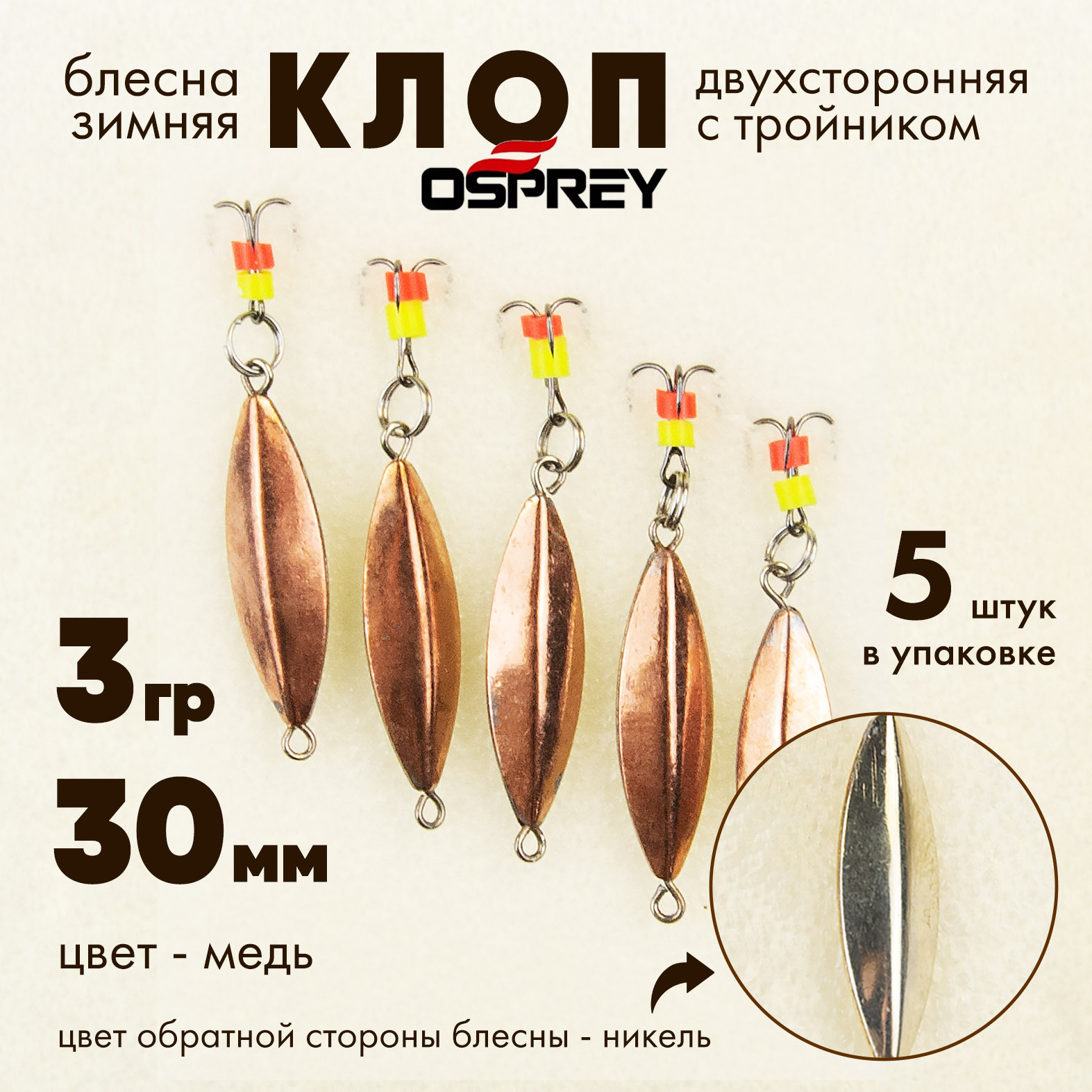 Блесна зимняя двухсторонняя Osprey "Клоп", тройник, 30мм (5шт/уп)