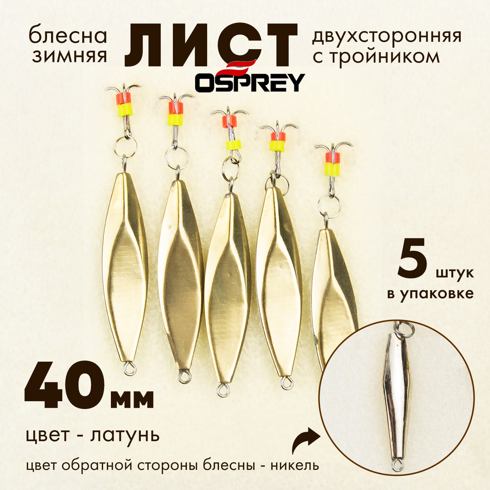 Блесна зимняя двухсторонняя Osprey "Лист", тройник, 40мм (5шт/уп)