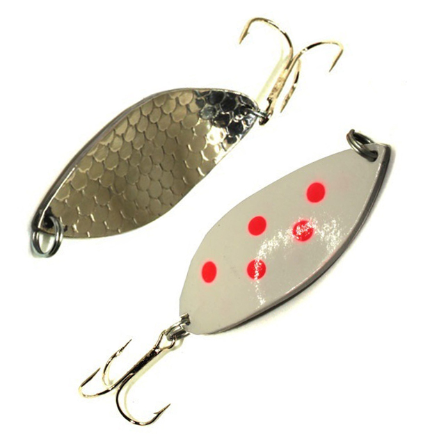 Имеет небольшое тело и достаточно большой вес. Хороша для заброса против ветра. Блесна является биметаллической, со смещенным центром тяжести в сторону тройника. При отвесном блеснении, на подтяг — мелко вибрирует, а на отпуск парит и уходит далеко в сторону от лунки.