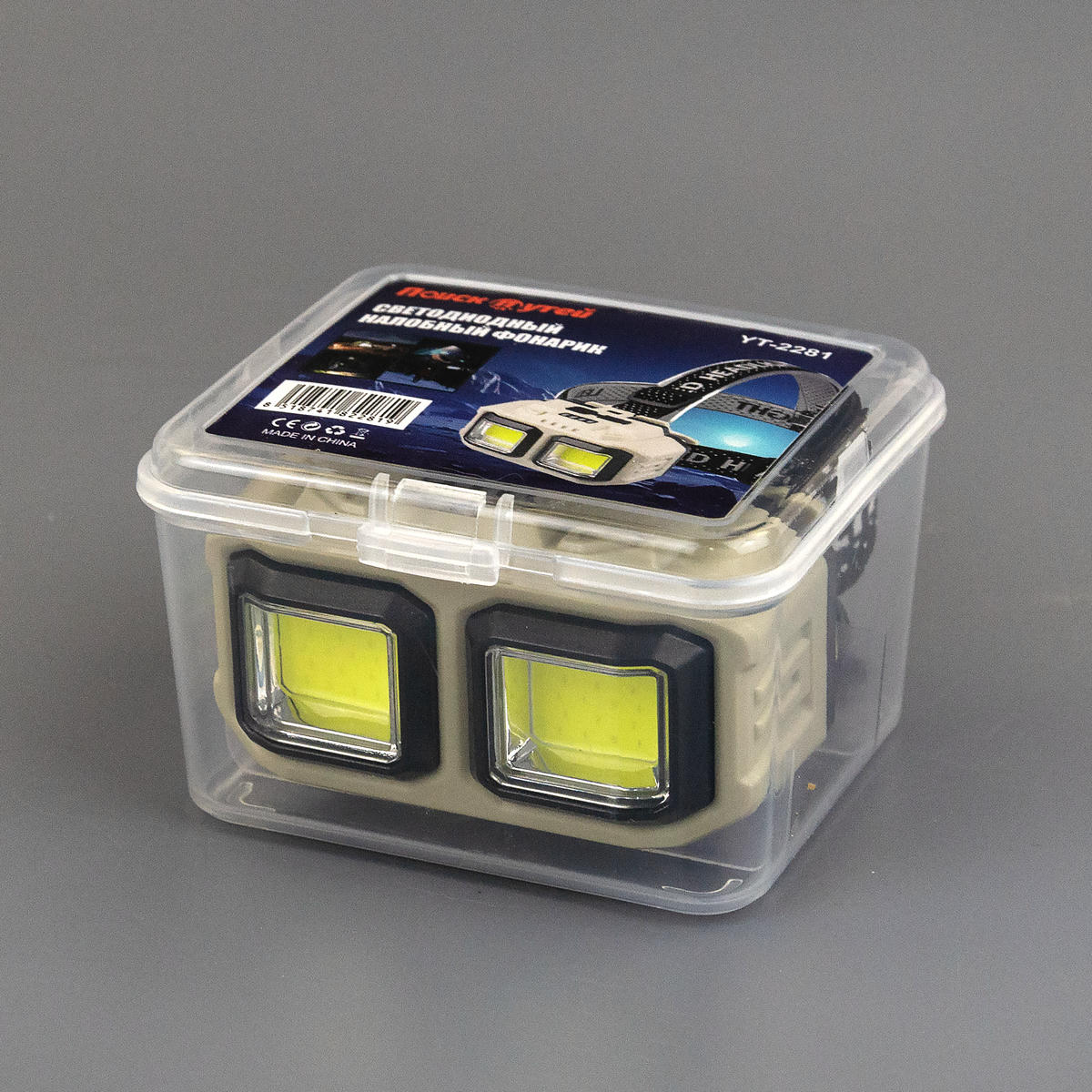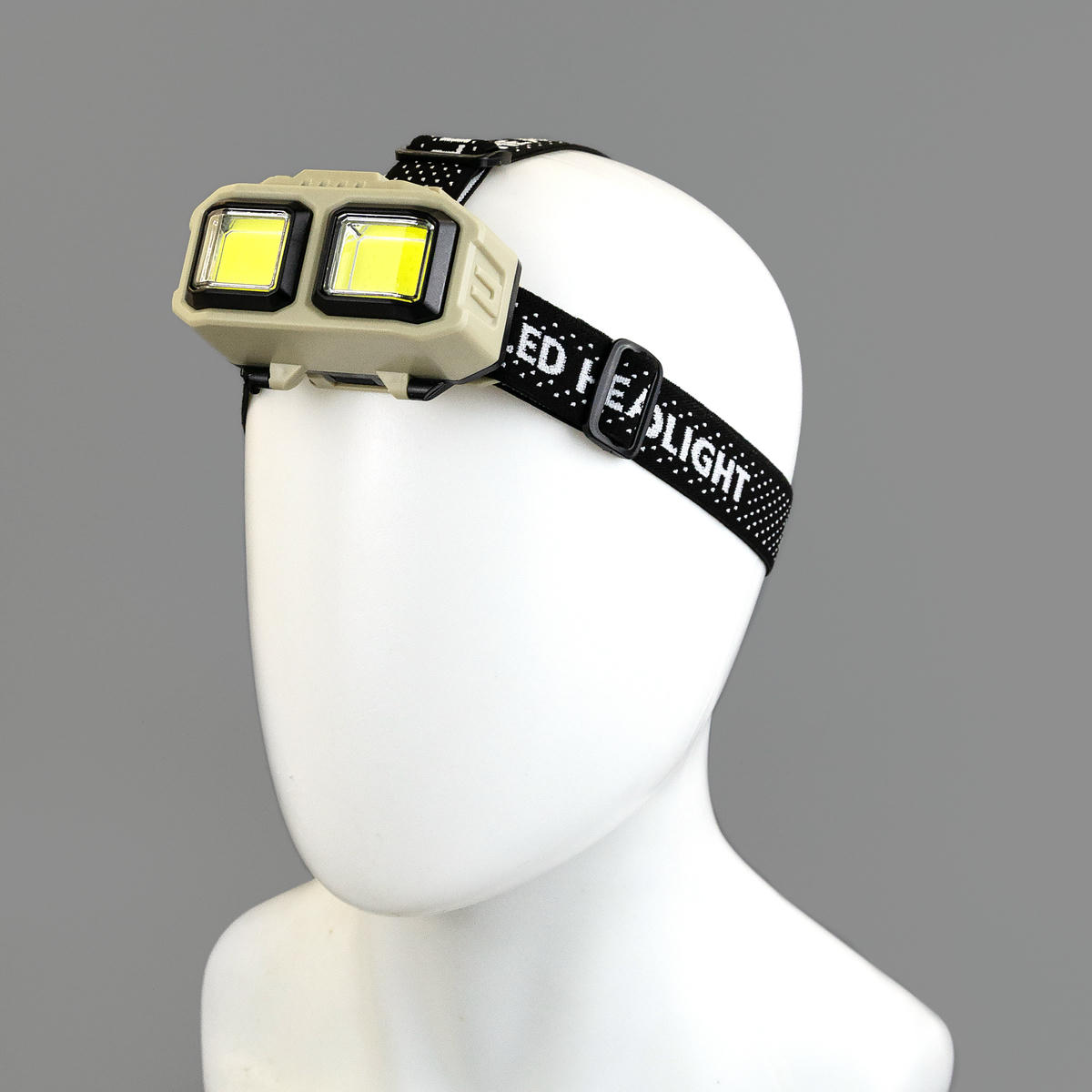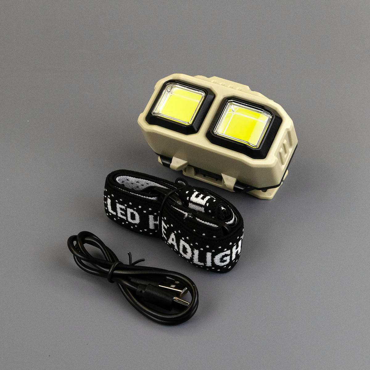 Налобный фонарь с двумя крупными COB-панелями, предназначенный для бытовых нужд, ремонта, рыбалки или кемпинга.