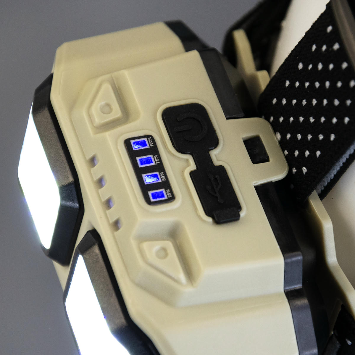Фонарь оснащен двумя крупными прямоугольными COB-панелями (Chip on Board). Они обеспечивают широкий, равномерный заливающий свет, который идеален для работы на близком расстоянии, так как не слепит пятном в центре.