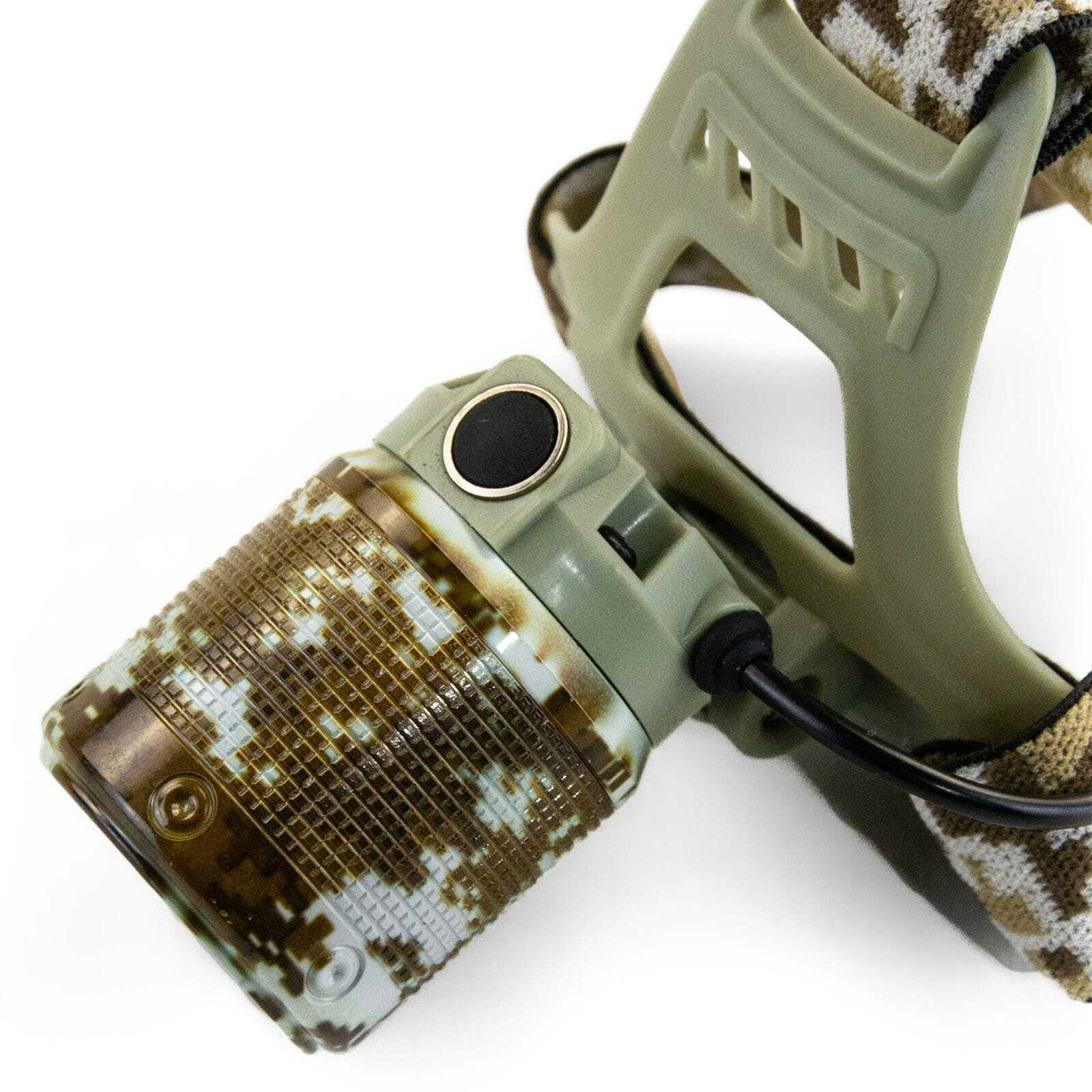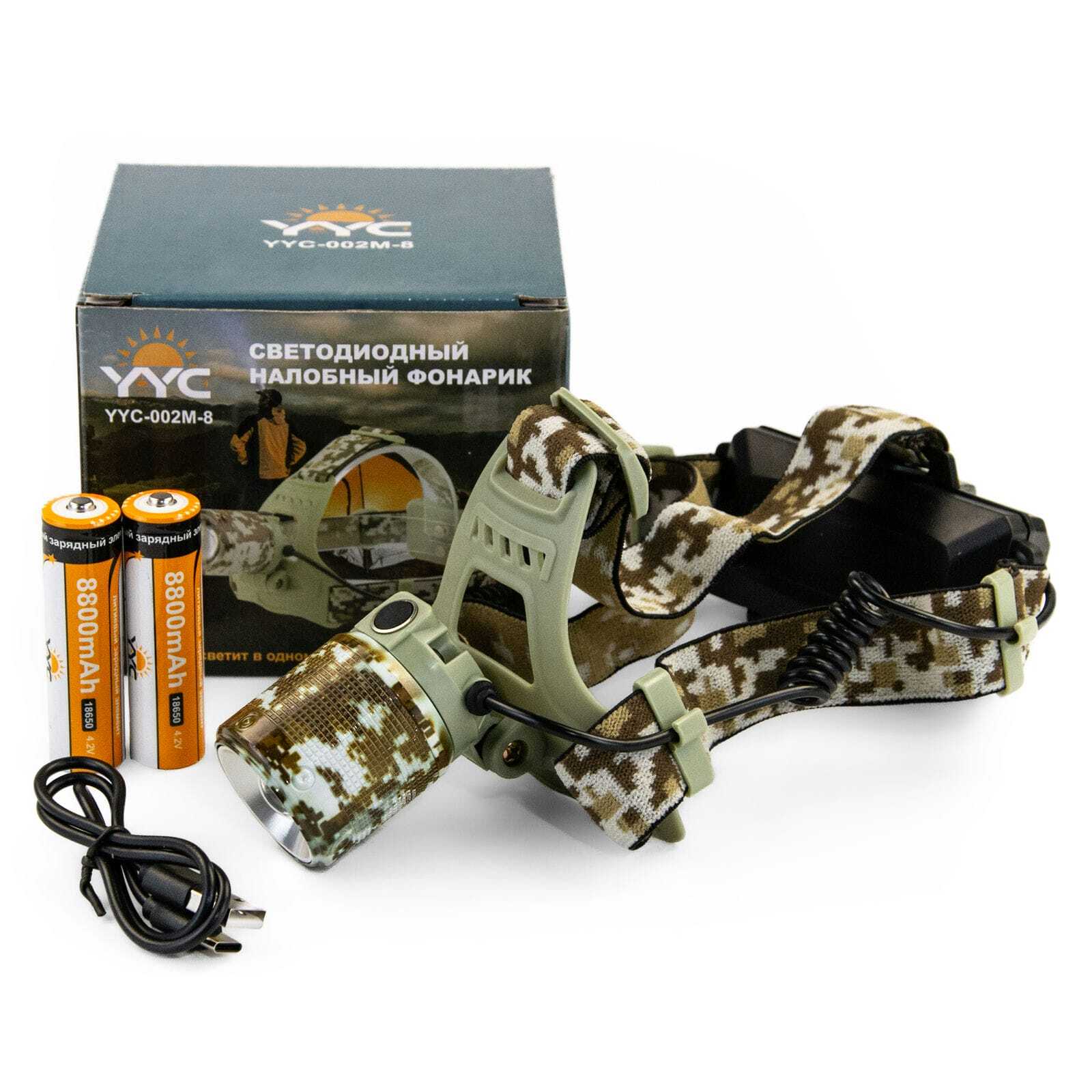 Тактический налобный фонарь YYC-002M-8 в камуфляжном исполнении оснащен светодиодом CREE XML-T6. Благодаря мощному световому потоку этот фонарик способен освещать пространство до одного километра, обладая интенсивным белым светом.