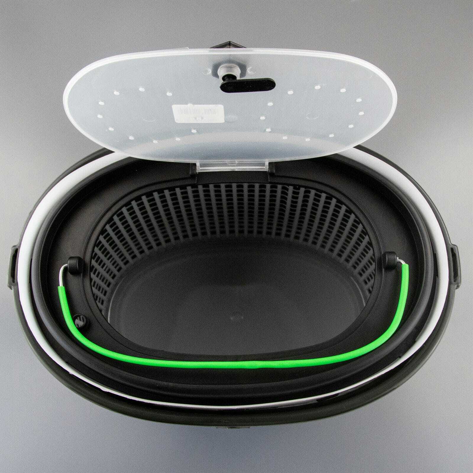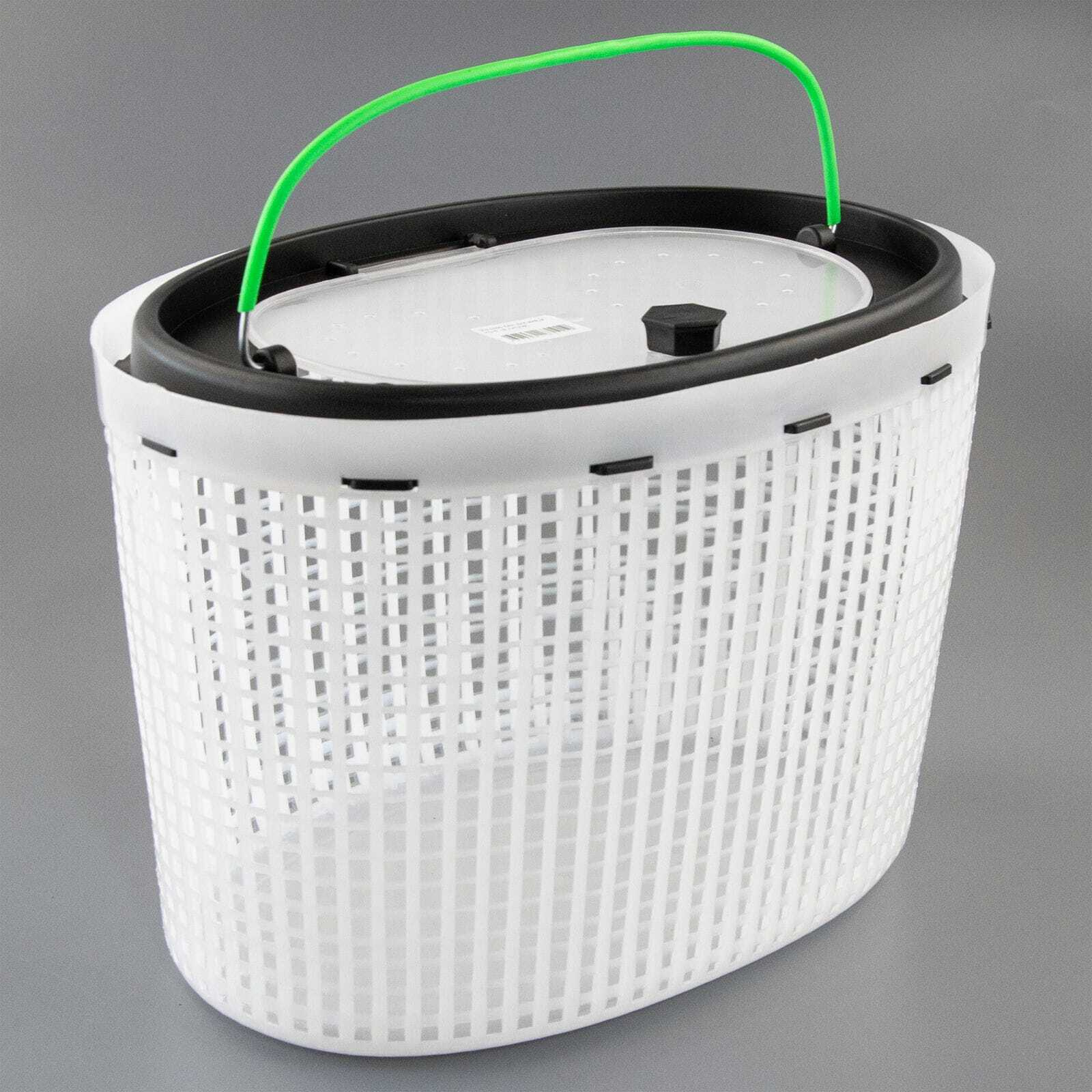 Кан для живца изготовлен из высококачественного пластика. Оборудован крышкой и сеткой. Наличие вынимающейся сетки позволяет легко извлечь живца или оперативно сменить воду. Основная (наружная) часть кана может быть использована в качестве ведра для прикормки. В комплекте плечевой ремень.