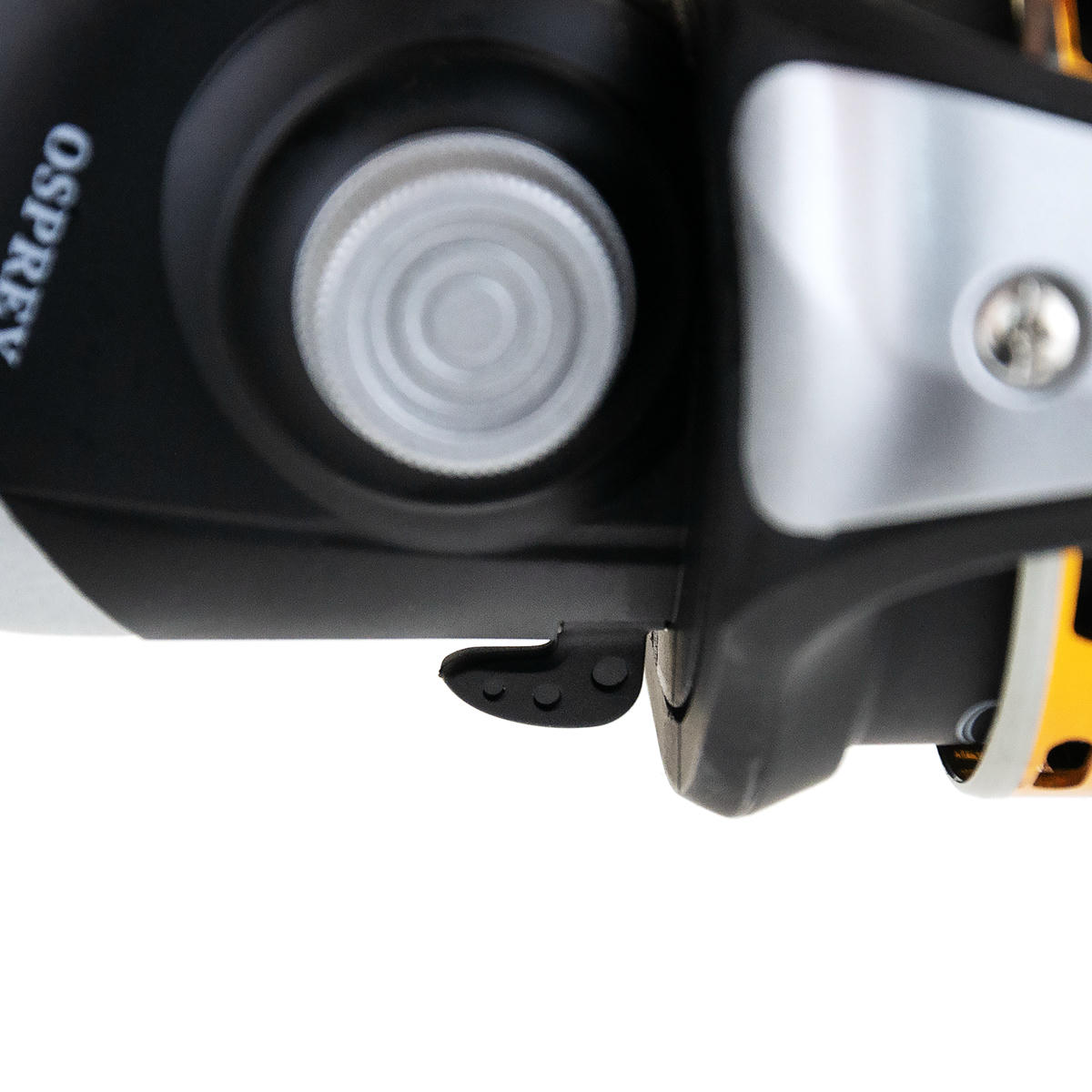 Безынерционная катушка Osprey GT имеет передний фрикцион. Минималистичный дизайн и качественные материалы, возможность установить ручку под правую или левую руку. Основная шпуля изготовлена из алюминия, дополнительная шпуля - из пластика.
