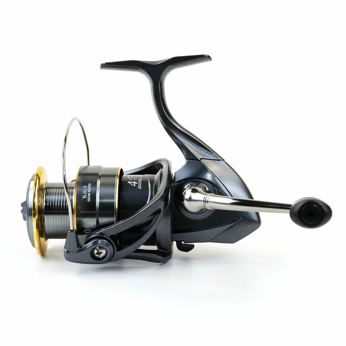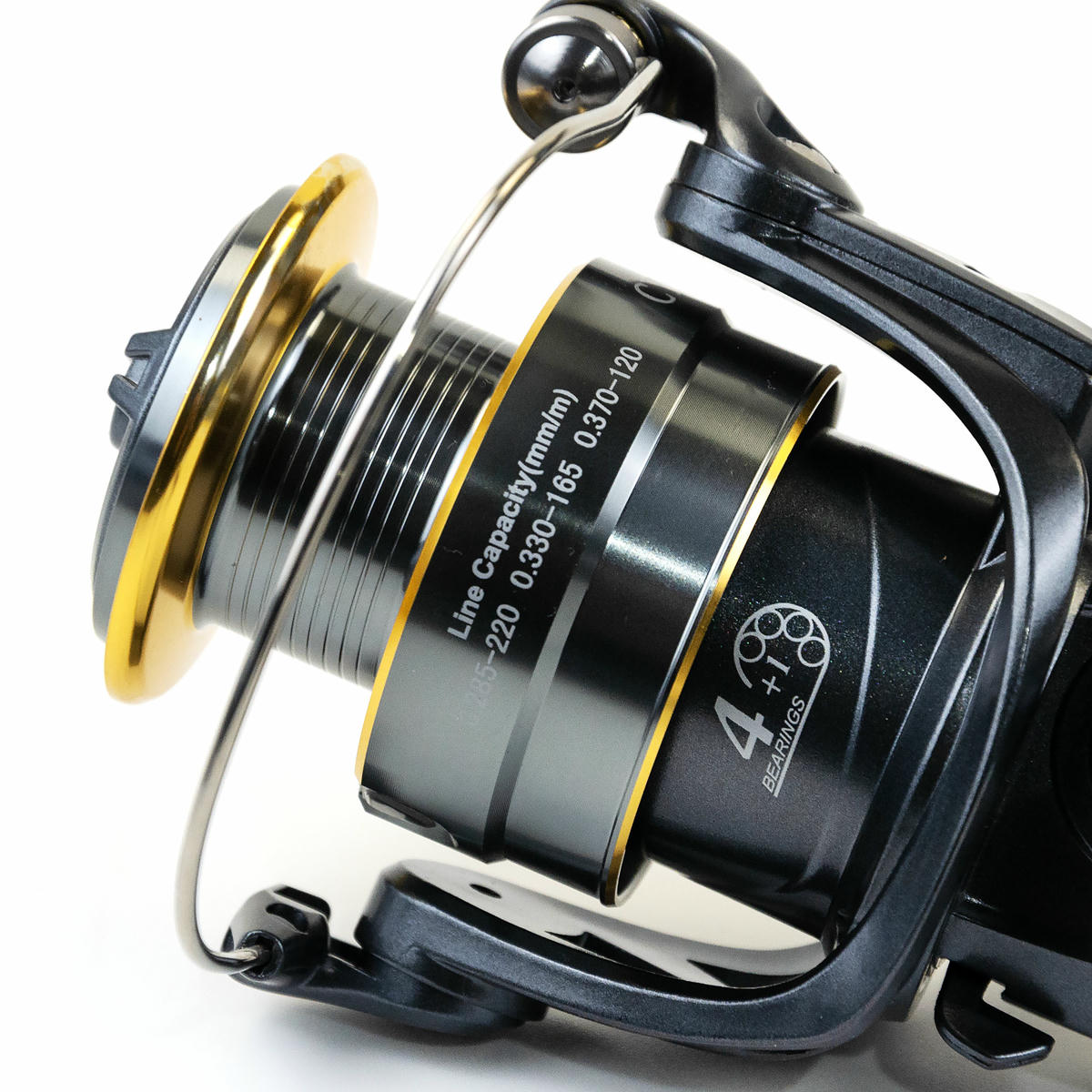 Корпус выполнен из высокопрочного пластика, устойчивого к механическим нагрузкам и перепадам температуры. Алюминиевая шпуля обеспечивает стабильную укладку лески и точную работу фрикциона. Конструкция включает четыре шариковых и один роликовый подшипник, что гарантирует мягкое вращение под нагрузкой и уверенное вываживание рыбы. Металлическая ручка фиксируется прижимным винтом и обеспечивает прочное соединение без люфта. Наличие стопора обратного хода и точная регулировка фрикционного тормоза обеспечивают контроль над вываживанием и снижают риск обрыва снасти.