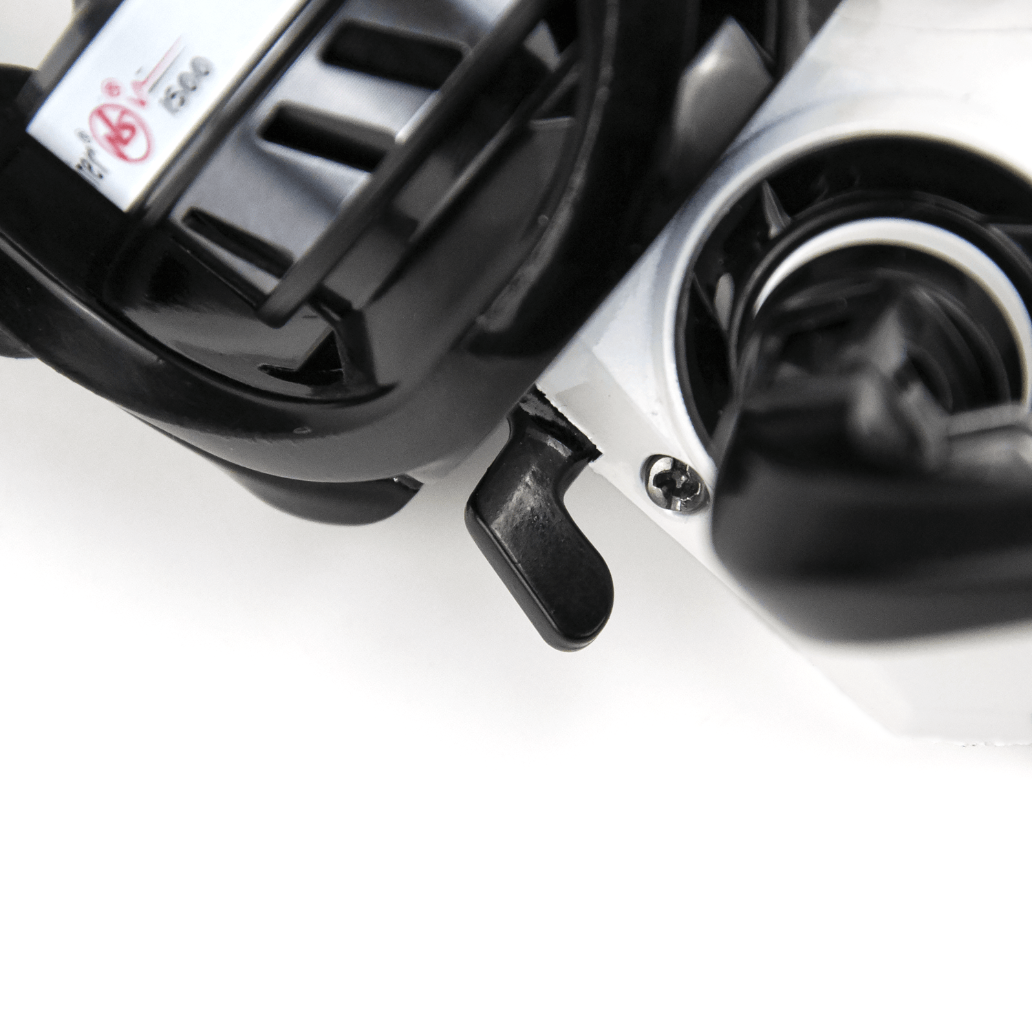 Корпус катушки Power Body компактный, сверхпрочный и легкий, ролик лесоукладывателя ATR-2 (имеет специальный профиль с напылением из нитрида титана, устанавливается на антикоррозионном подшипнике ACB и уменьшает скручивание лески), рукоять с системой One-touch. Плавная подача штока Silent Drive и замедленный ход вала Slow Shaft, который обеспечивает плавное движение шпули, дают гарантию ровной укладки плетенки или лески.