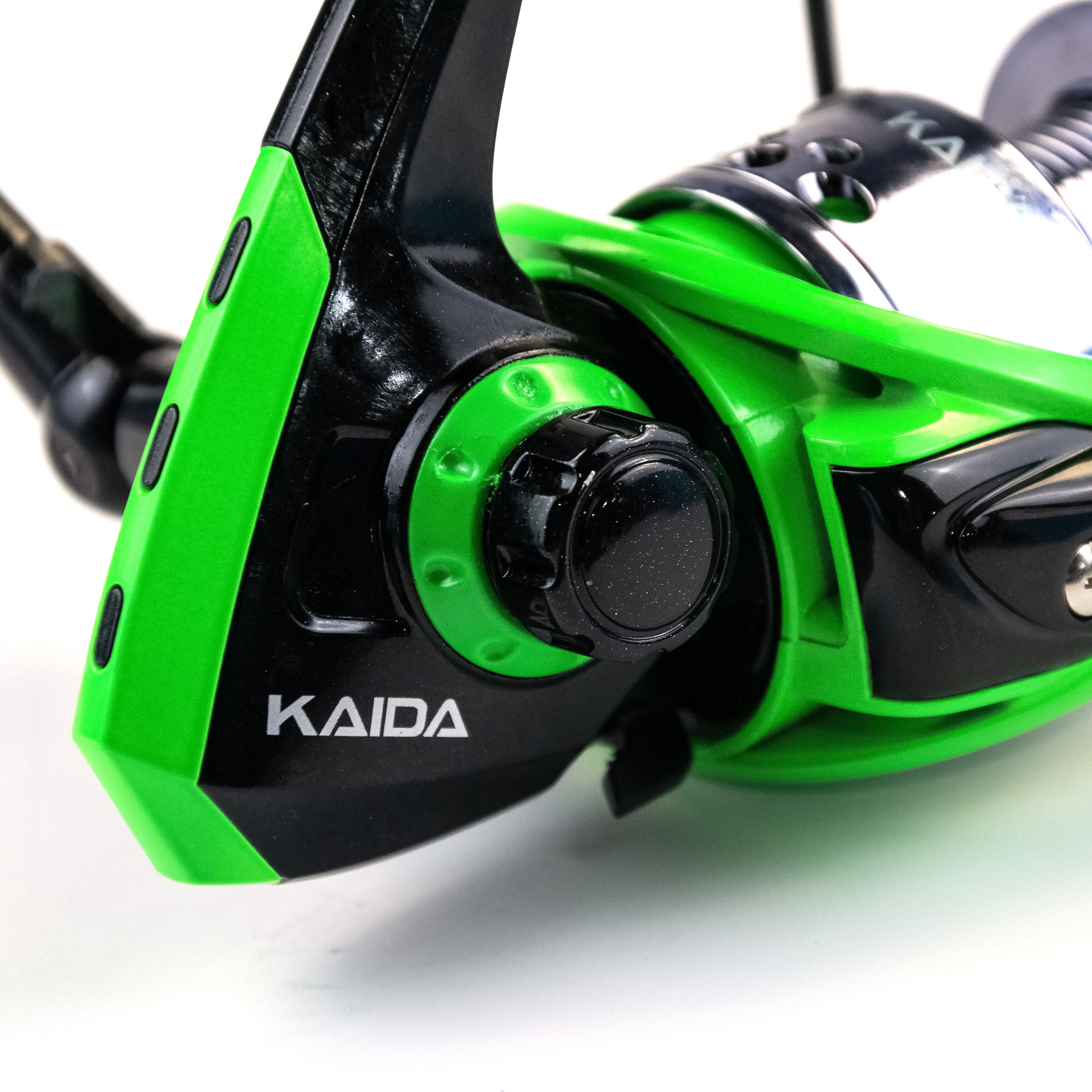 Прочный материал корпуса отлично противостоит ударам при падении. Шпуля выполнена из графита, а специальная обработка бортика шпули позволяет уменьшить трение лески или шнура и выполнять дальние забросы.