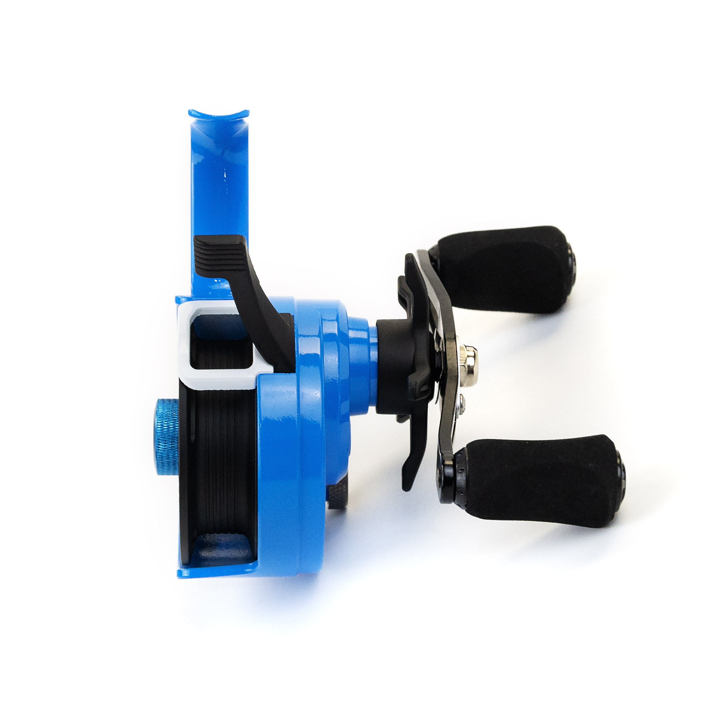 Катушка оснащена шпулей из прочного морозостойкого пластика, что в свою очередь практически исключает намерзание льда и значительно снижает вес всей снасти.