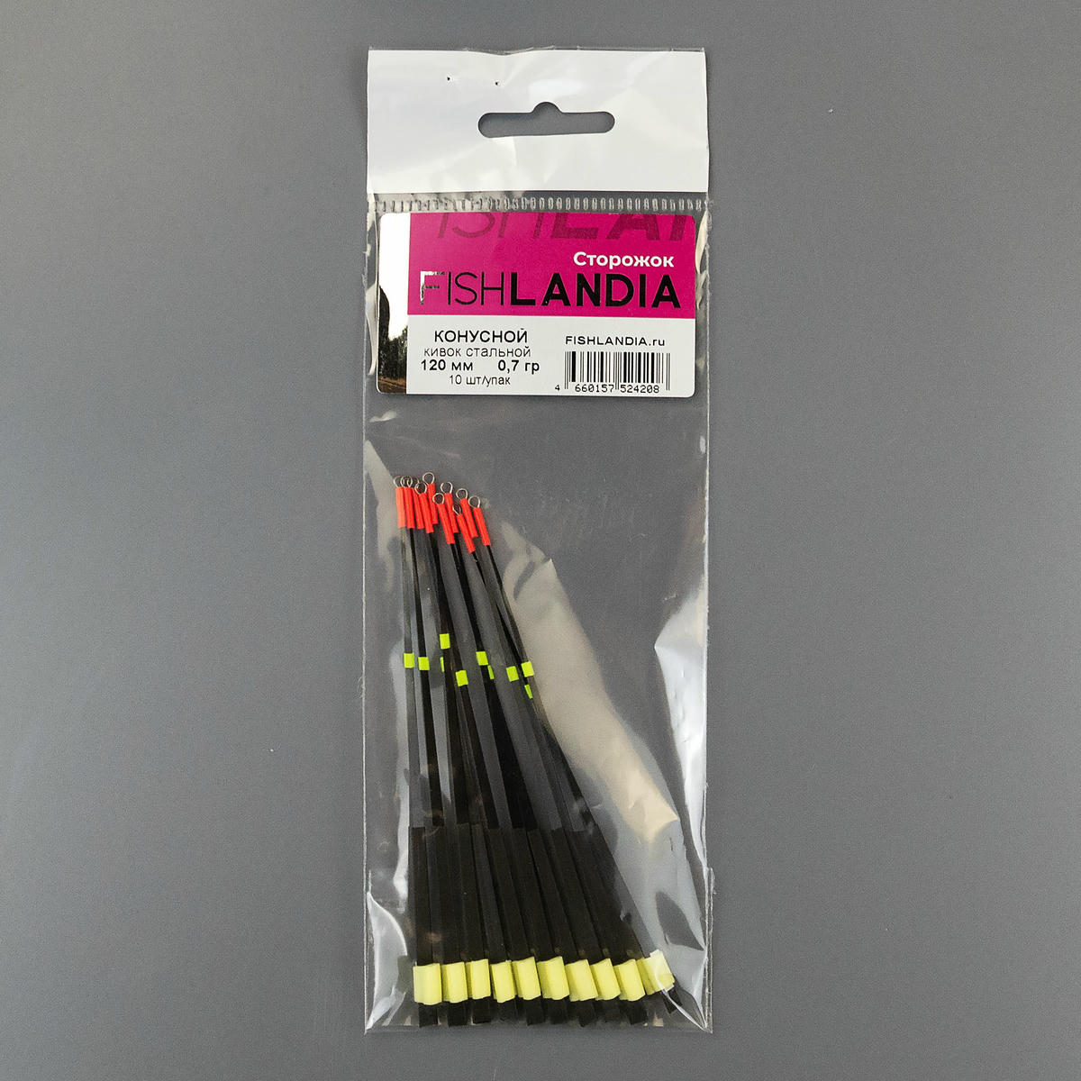 Стальные конусные кивки изготовлены из качественной стали черного цвета, которая хорошо заметна на снегу. Имеют передвижной кембрик для дополнительной фиксации лески. На кончике кивка находится яркий контрастный кембрик, благодаря которому можно отследить любое прикосновение рыбы к мормышке. Удобный силиконовый держатель кивка с кембриком под леску подходит для всех диаметров хлыста удочки.