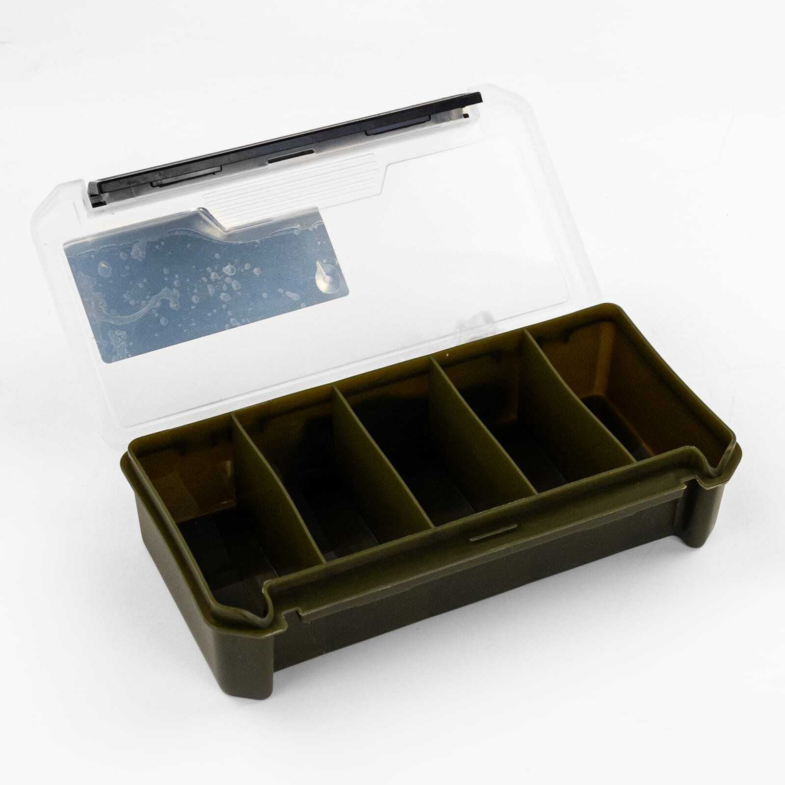 В данной модели предусмотрено 5 отделений, которые можно использовать для хранения и переноски оснасток, крючков, грузил, вертлюжков. Конкретно для карпфишинга в этой коробочке можно расположить запасные клипсы, отбойники, стопора и противозакручиватели. Такой бокс можно использовать не только в карпфишинге, но и в спиннинговой ловле – удобно разместить в ней воблеры и не только, фидерной ловле - для ограничительных стопоров, грузиков, крючков и других рыболовных снастей.