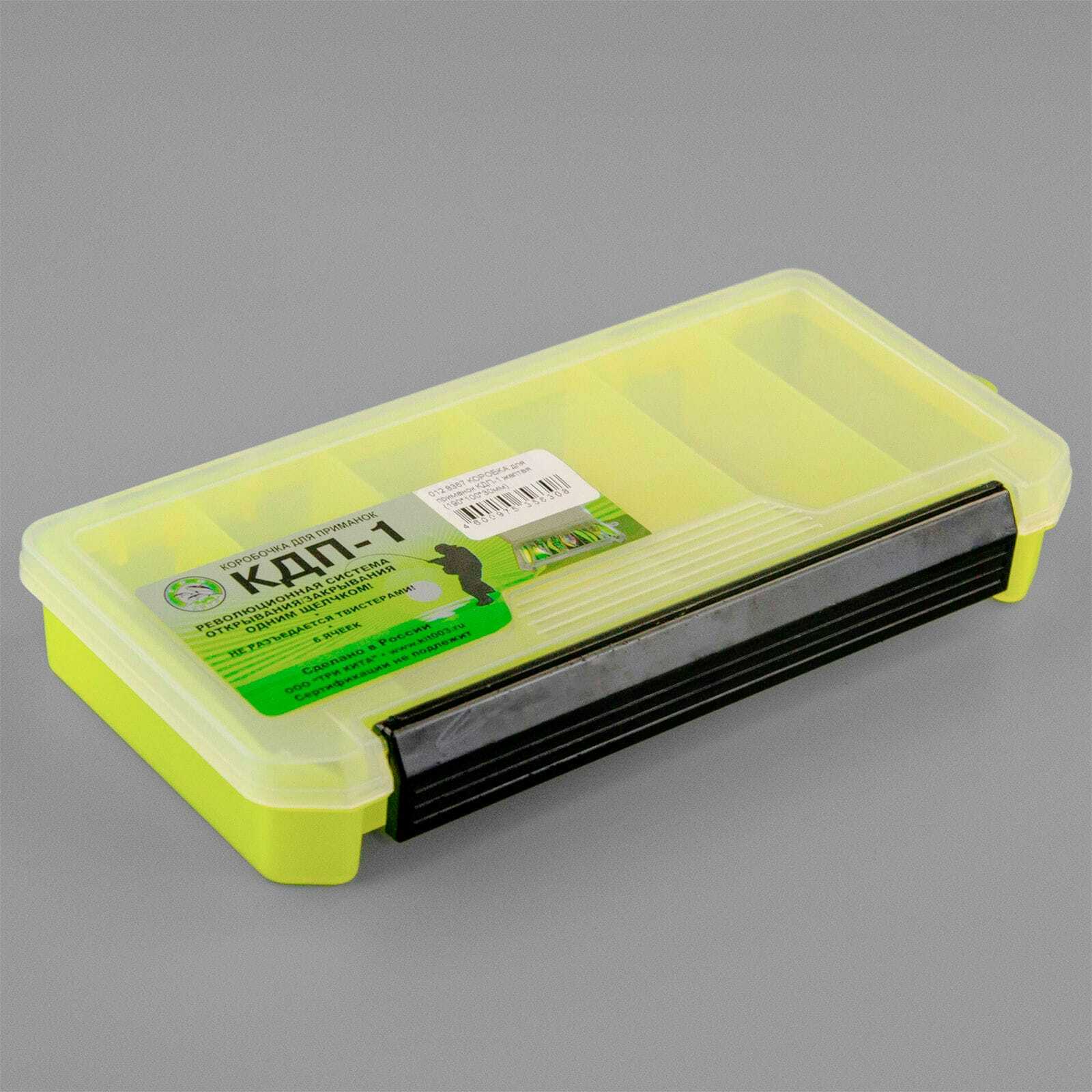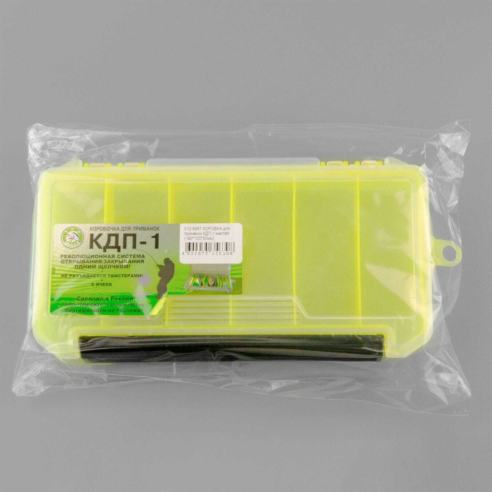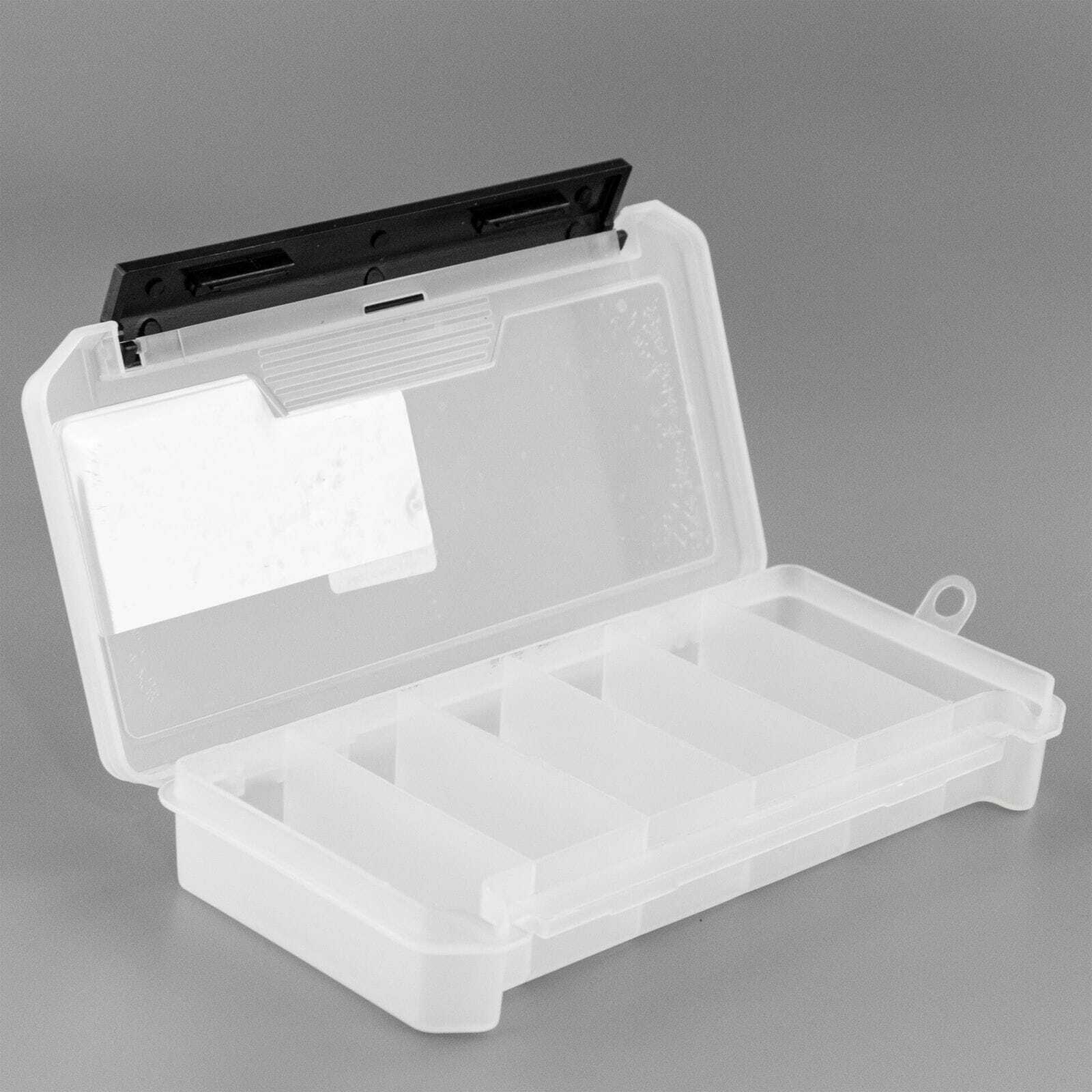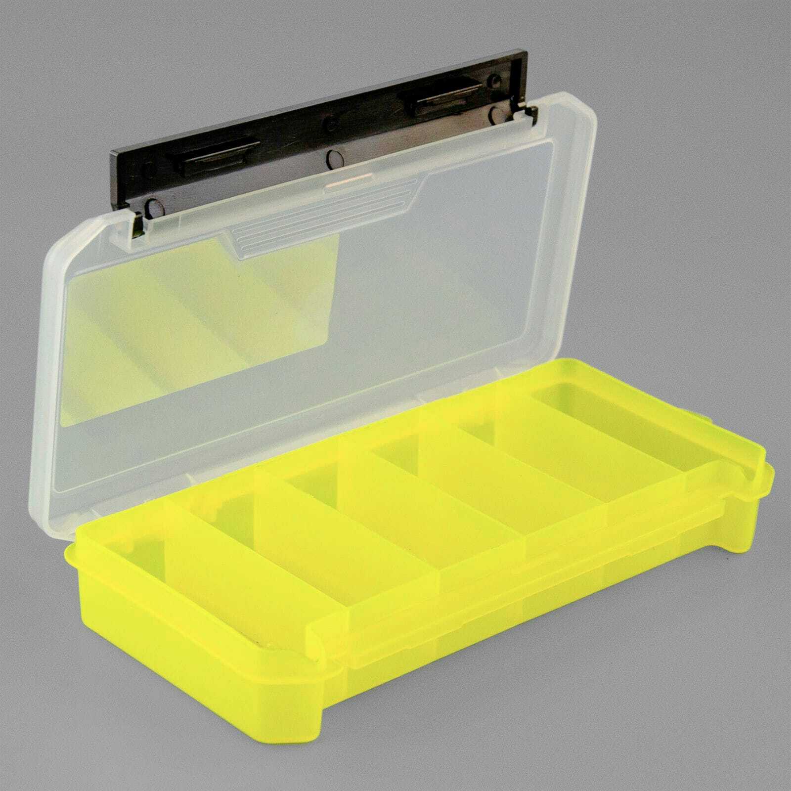 Коробка выполнена из высококачественного пластика, в котором можно хранить мягкие приманки, пластик не вступает с ними в химическую реакцию. В коробке предусмотрено 6 отделений, одно отделение способно уместить 2 средних воблера. Также подходит для блесен, балансиров, джиг-головок и прочих мелких рыболовных принадлежностей.