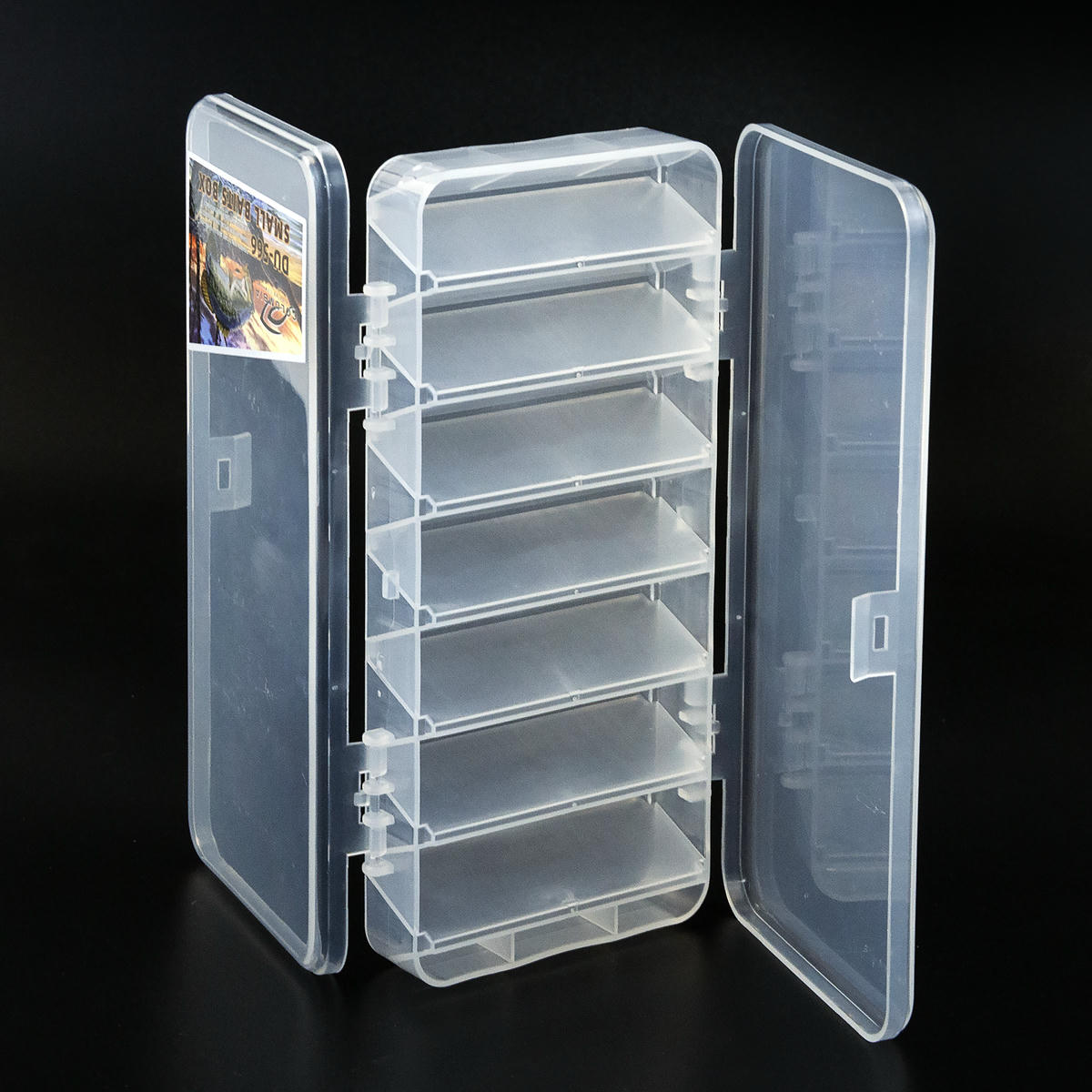 Коробка полупрозрачная, что помогает выбрать необходимую приманку, не открывая бокса. Прочные защелки обеспечивают надежное хранение приманок и предотвращают их случайное выпадение.