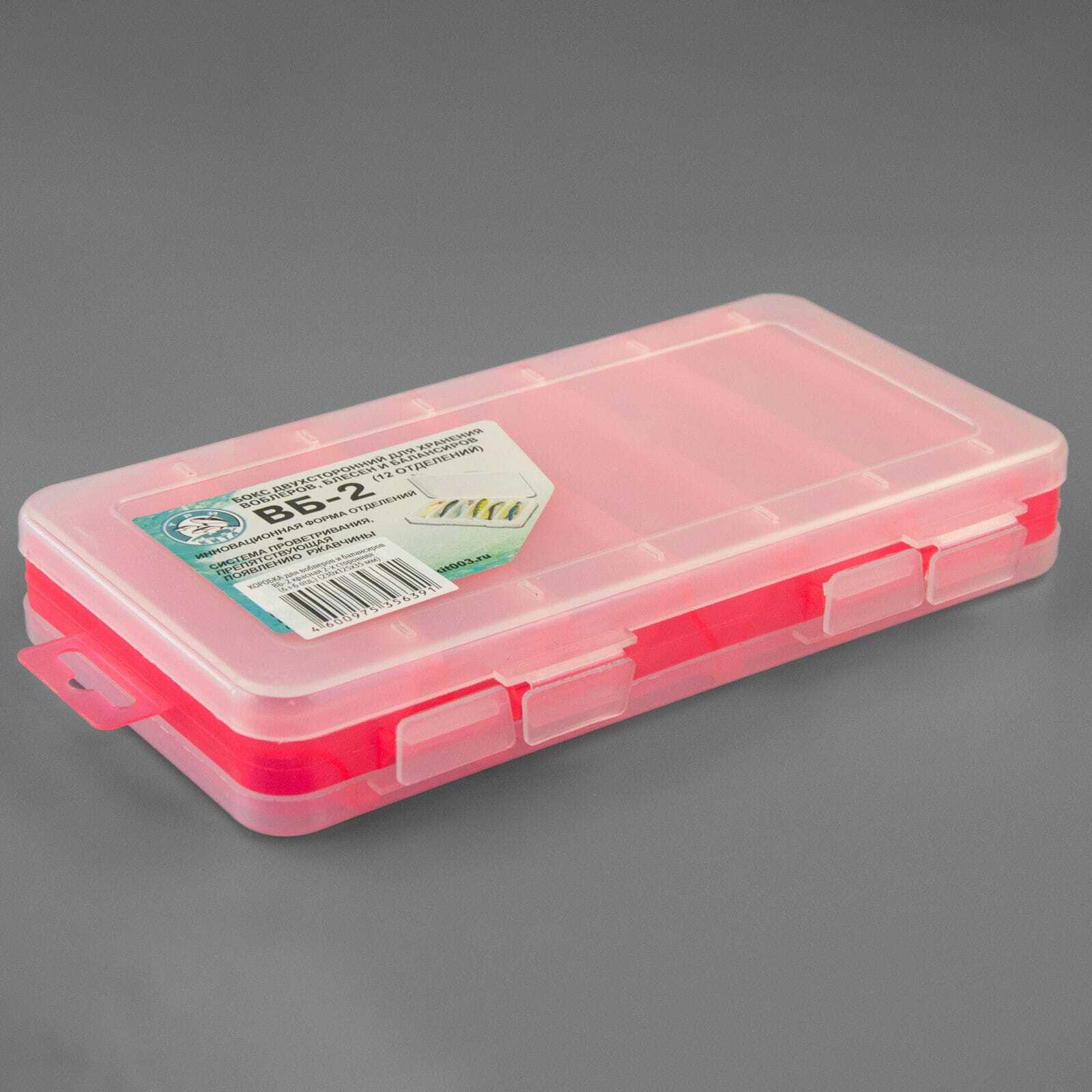 Коробка выполнена из высококачественного пластика, двусторонняя. Всего в ней 12 отделений, по 6 отсеков с каждой стороны. Закрывается плотно, полностью исключая возможность самопроизвольного открывания.