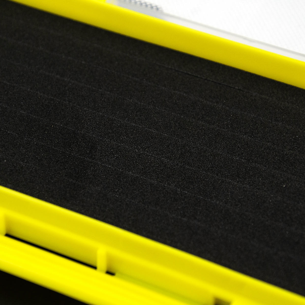 Коробка для хранения мелких рыболовных приманок. Внутри одно отделение, пространство которого заполнено пористой «пенкой» с набором продольных параллельных прорезей. Изолон не впитывает воду и запахи. Прозрачная крышка помогает при поиске приманки в закрытом состоянии.
