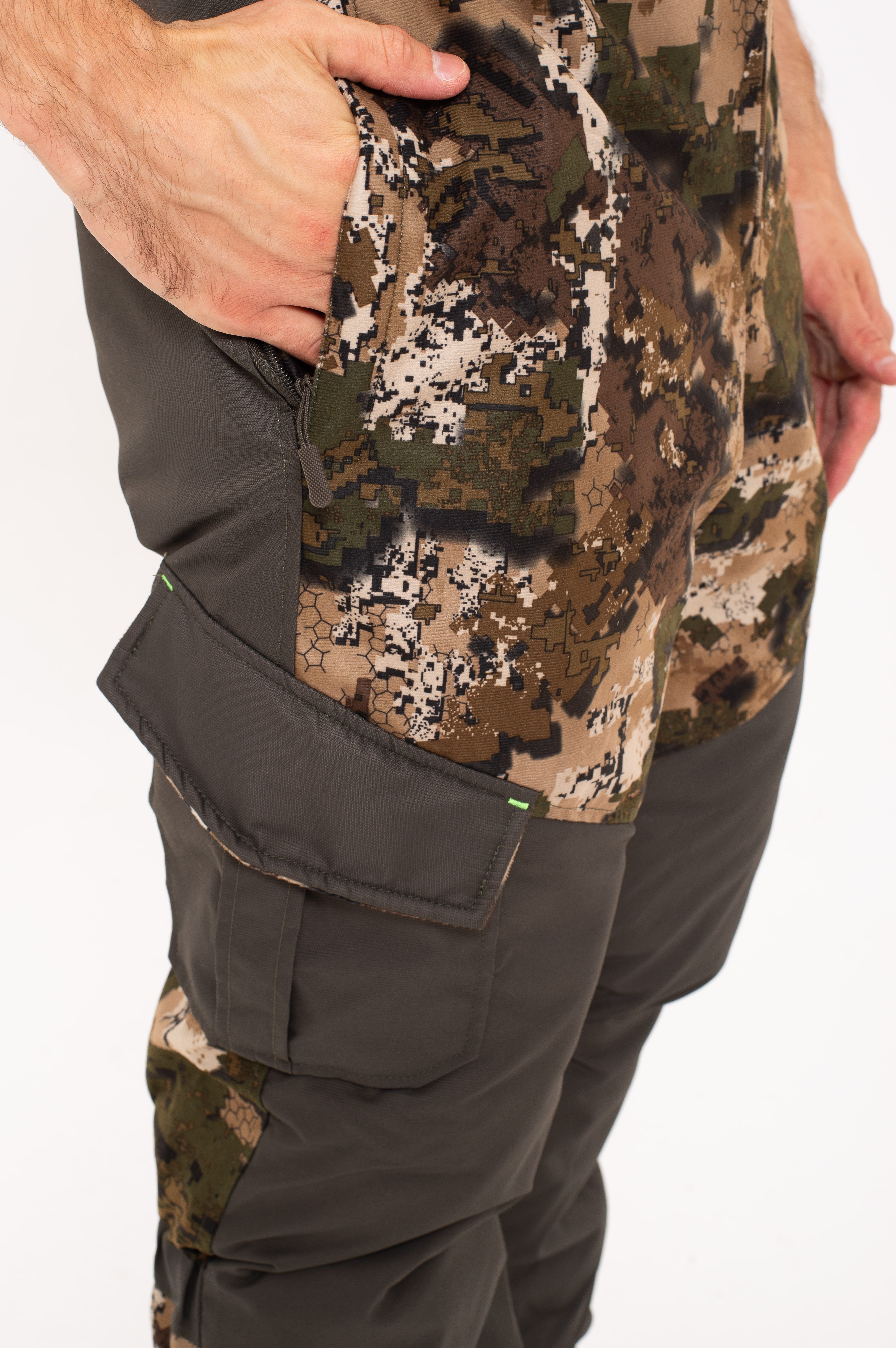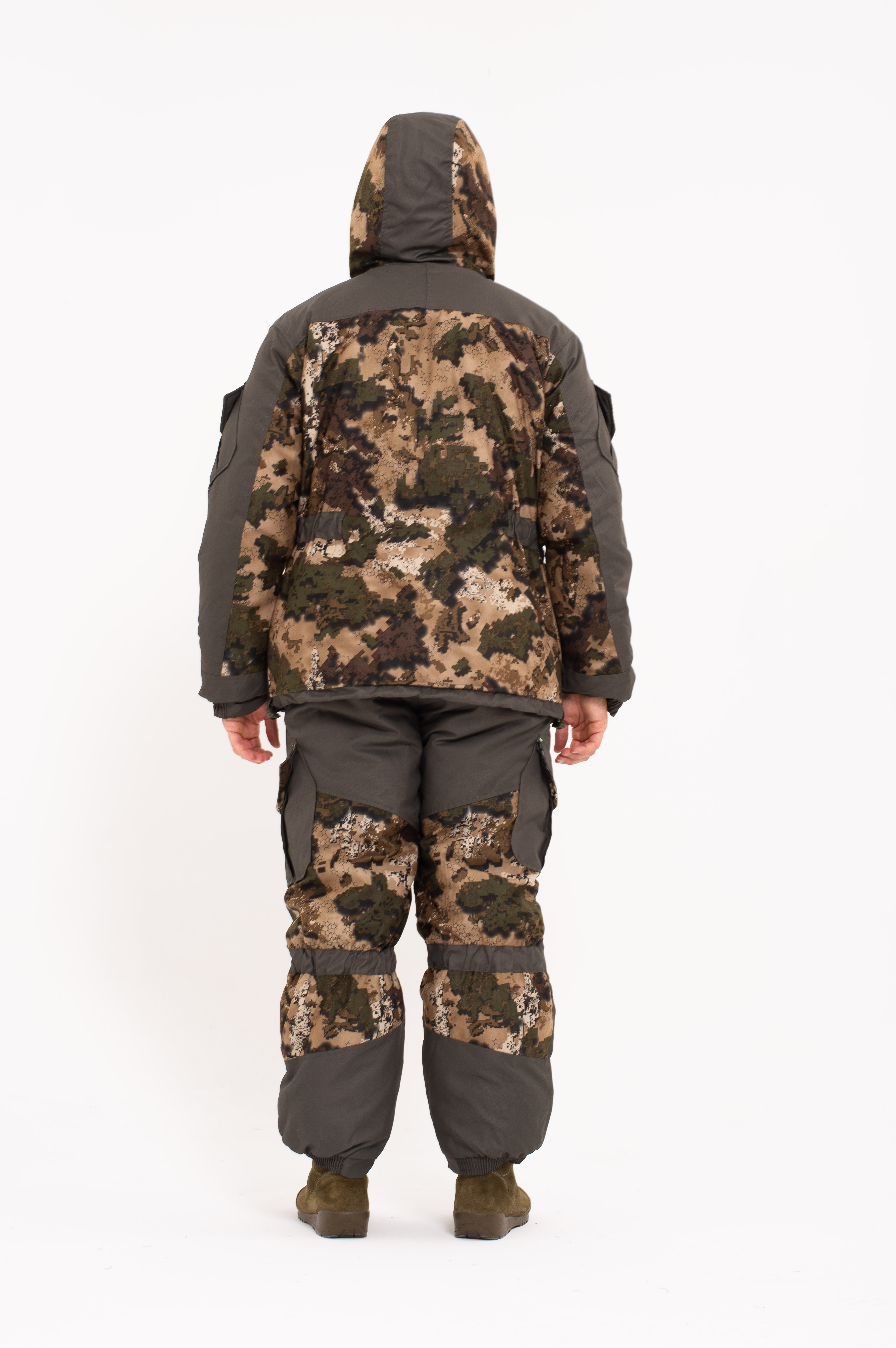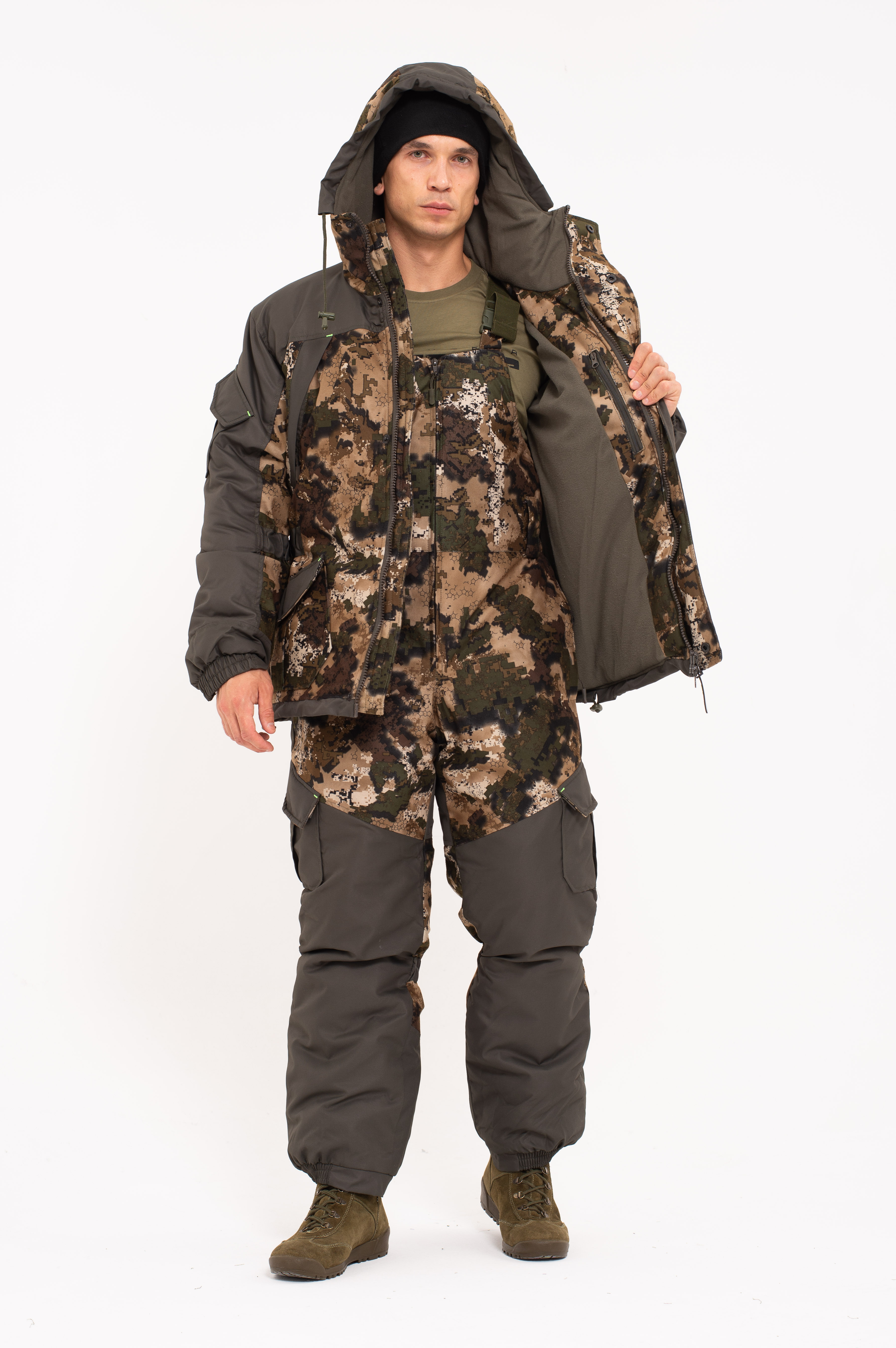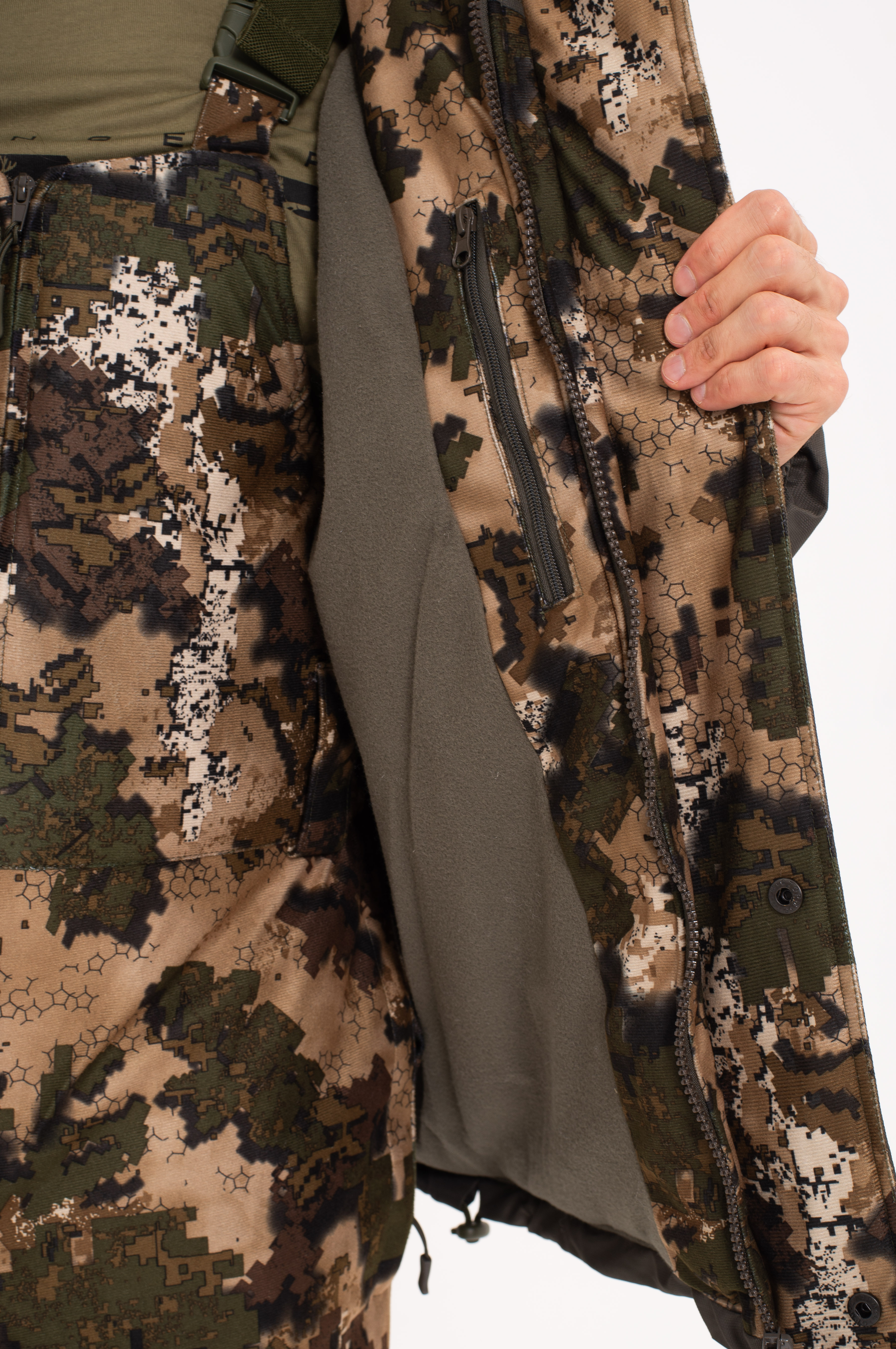 Основная ткань "Алова" (100% полиэстер) - трикотажное полотно с фирменным камуфляжным пиксельным принтом "OneRus", покрытое с изнаночной стороны влагоотталкивающей паропроницаемой мембранной пленкой, благодаря чему испарения выводятся с поверхности тела наружу, а с другой стороны создается защита от ветра и проникновения влаги, тем самым обеспечивается комфорт при носке.