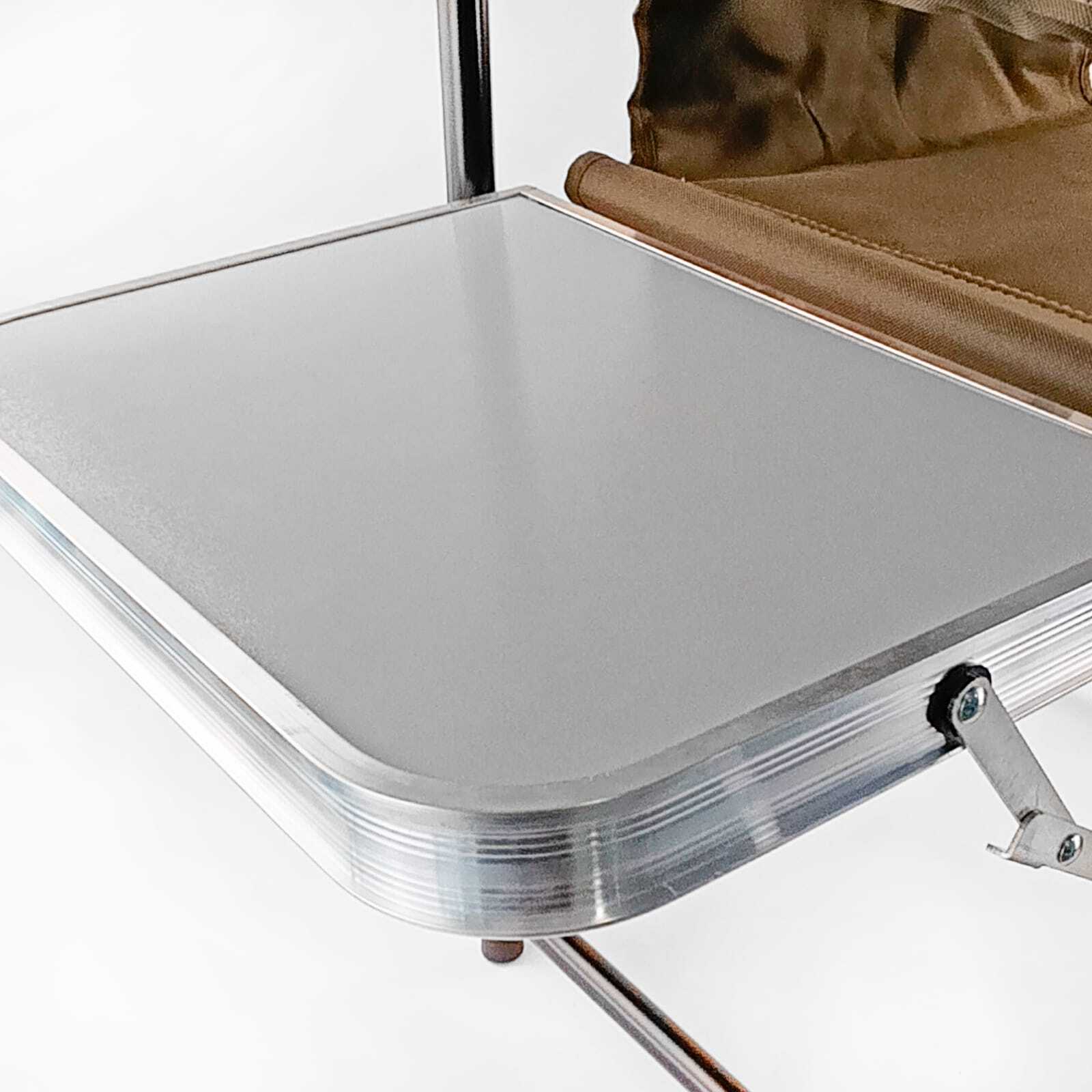 Практичное и комфортное складное кресло с откидным столиком. Материал каркаса – алюминий. Удобная спинка позволяет расслабиться и не дает спине затекать. Мягкие подлокотники позволяют комфортно лежать рукам. Спинка и сиденье сделаны из двойного слоя ткани, с утеплителем между слоями. Сложить и разложить кресло можно за несколько секунд.