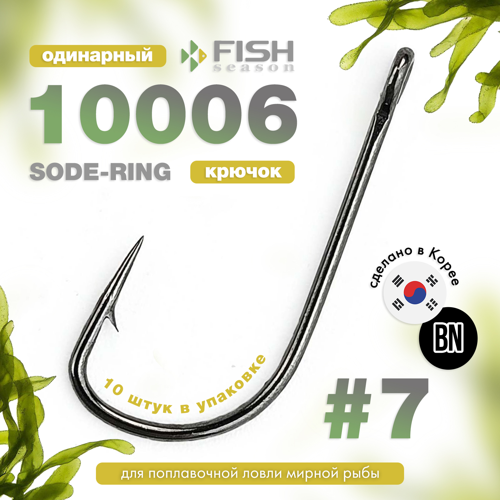 Крючок Sode с бородкой и ушком изготовлен из высокоуглеродистой стали с закалкой. Это один из наиболее универсальных и удачных крючков по форме. Название и нумерация – японские: чем больше номер крючка, тем крупнее его размер. Крючок не кованый.