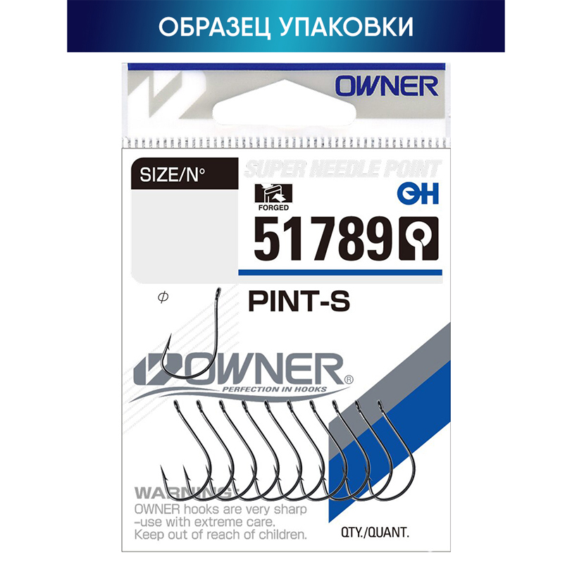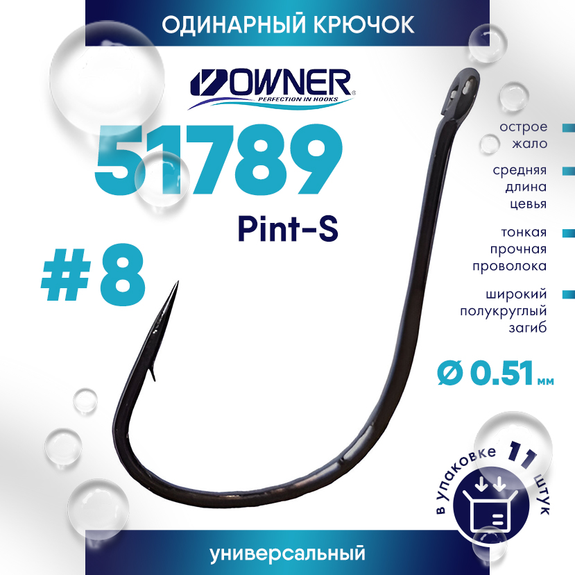 Owner Pint-S 51789 – серия прочных универсальных крючков, изготовленных из высококачественной углеродистой стали. Крючки Owner 51789 имеют широкий полукруглый загиб, кованый поддев, прямое тонкое жало, нормальной длины цевье с немного отогнутым наружу колечком и защитное покрытие Black Chrome.