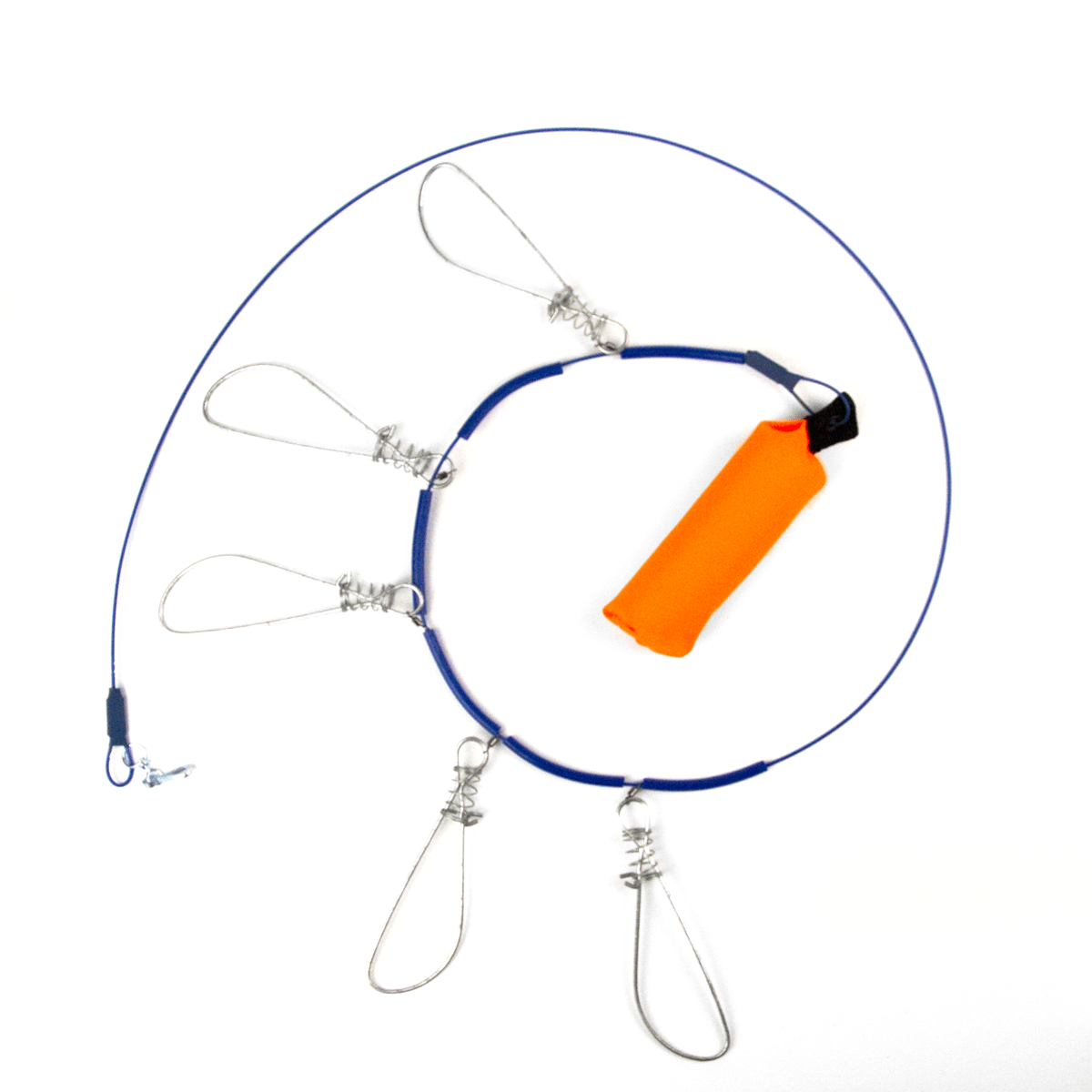 Кукан сделан из троса с петлей на конце, в которую продет карабин. Крепление петли заизолировано. Трос имеет анти-коррозионное покрытие.