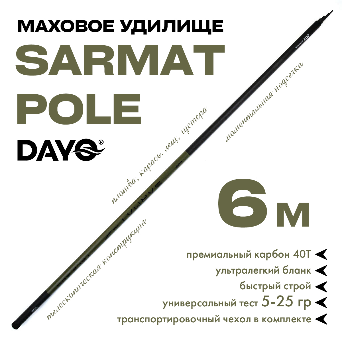 Dayo Sarmat Pole - это ультралегкое телескопическое удилище премиального класса из высокомодульного карбона 40T. Создано для комфортной поплавочной ловли на течении и в стоячей воде. Сочетает в себе минимальный вес, высокую жесткость и чувствительность, позволяя ловить рыбу целый день без усталости в руках.