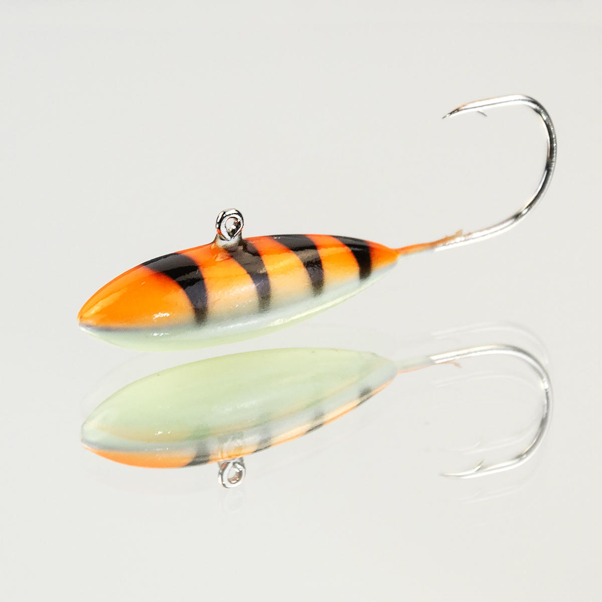 Для надежной подсечки и удержания пойманной рыбы мормышки оснащены достаточно крупным крючком. Рекомендуется для ловли берша и судака.