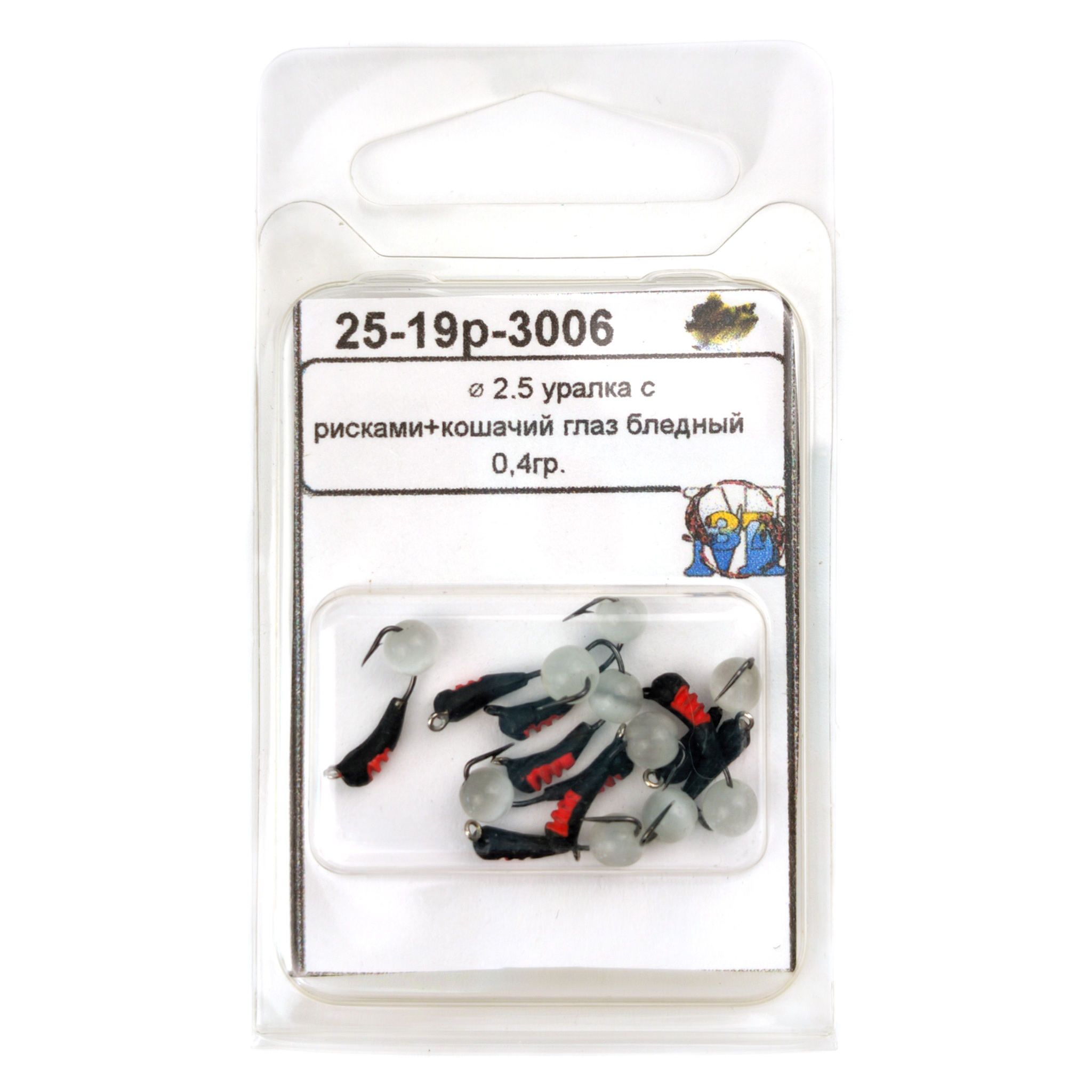 Мормышка "Уралка с рисками" + "Кошачий глаз", 25-19р-3006