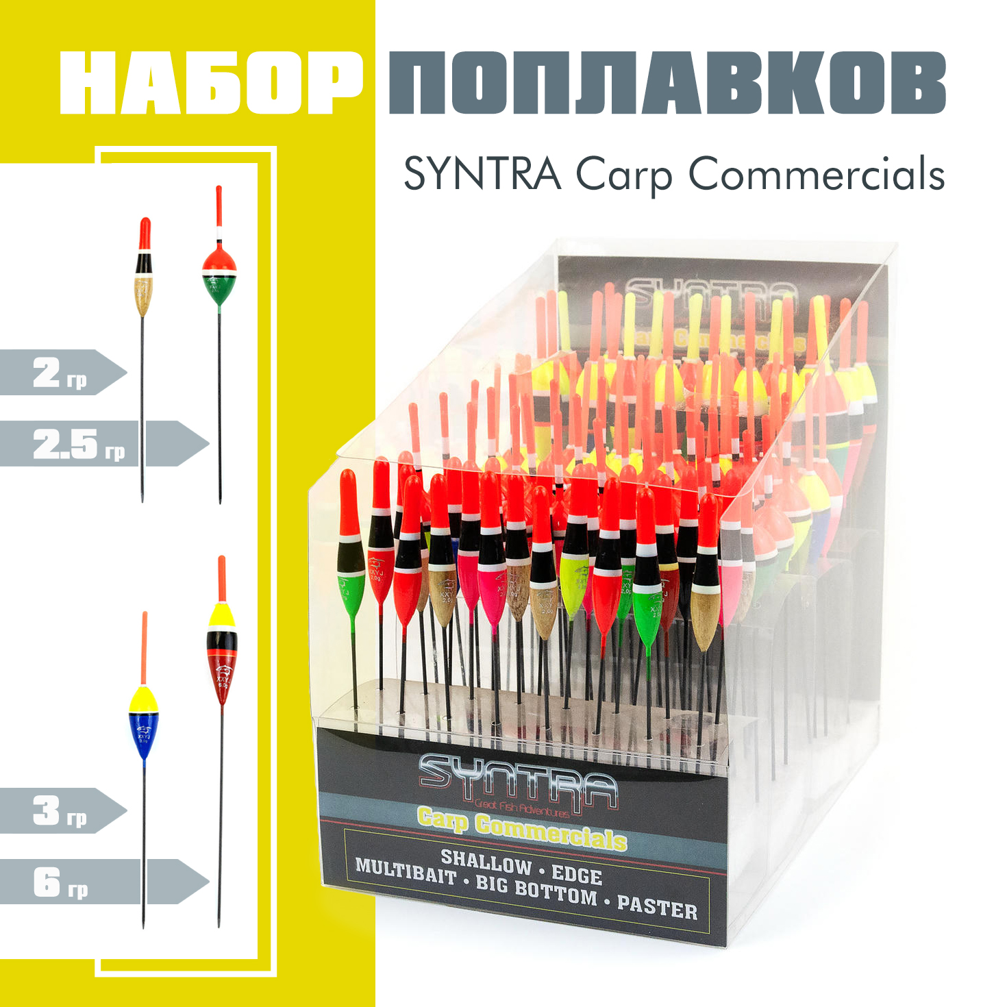 Набор рыболовных поплавков SYNTRA серии Carp Commercials - это профессиональное решение для любителей и мастеров поплавочной ловли на коммерческих водоёмах. Набор разработан специально для охоты за карпом, амуром и крупным карасем, обеспечивая высокую точность и надёжность оснастки.