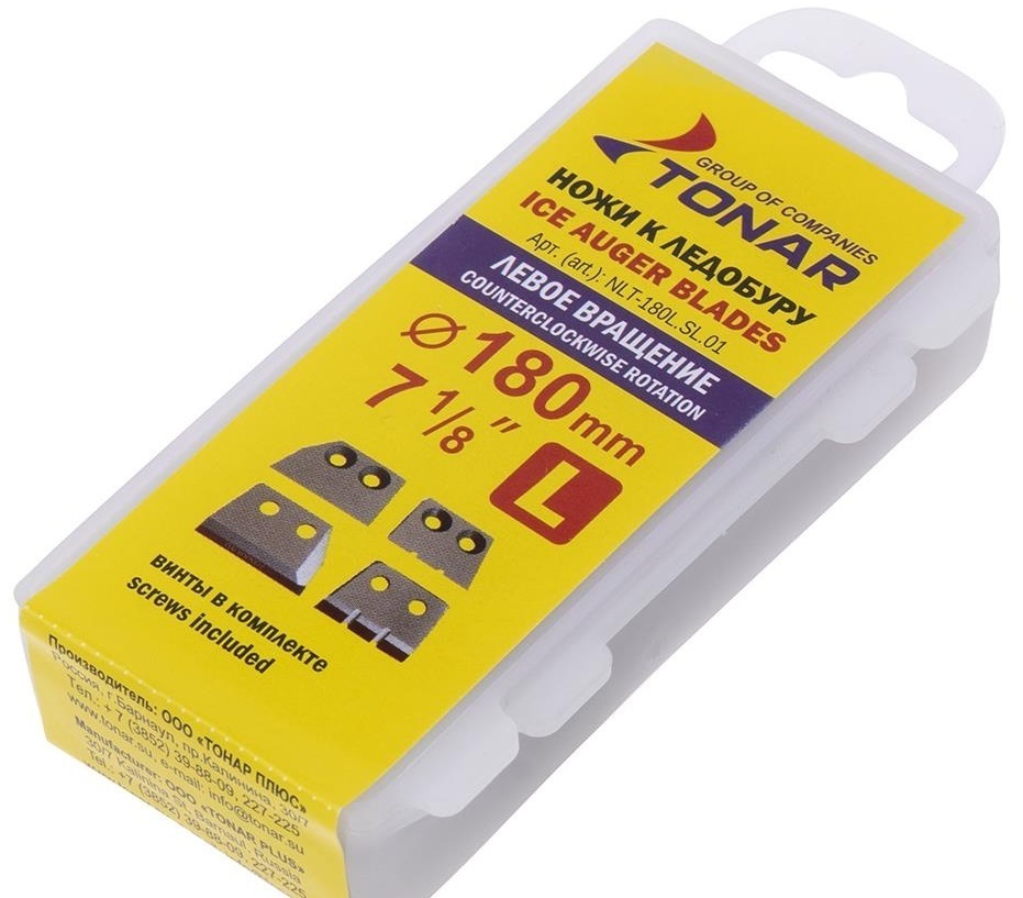 Комплект ножей для ледобура диаметром бурения 180 мм и левым вращением. На ледобур диаметром 180 мм устанавливаются сразу четыре ножа. На рабочей поверхности внешних ножей выполнены канавки. Ножи изготовлены из высокоуглеродной легированной стали. После закалки ножи имеют твердость 55-60 HRC, что позволяет многократно перетачивать ножи без ухудшения их первоначальных свойств.