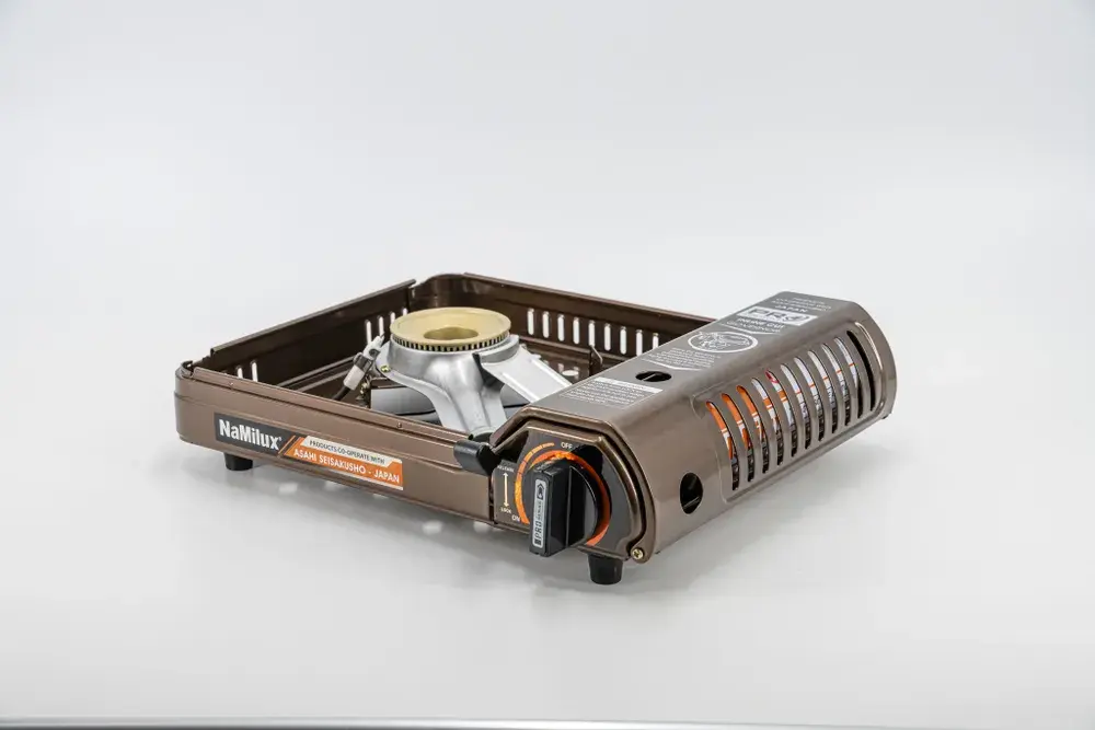 В систему встроено два предохранительных клапана, что означает двойную защиту и безопасность устройства прямого отключения газа. Имеются специальные борты для защиты от ветра. Упакована в пластиковый кейс.