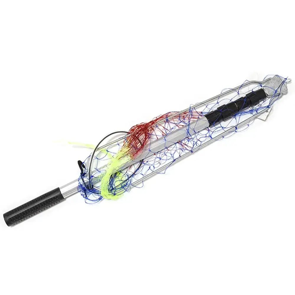 Подсачек является важным помощником при вываживании рыбы у берега, где есть вероятность схода крупного трофея с крючка. Данная модель оптимальна для вываживания хищника, т.к. в отличие от капронового подсачека, к этому не будут цепляться тройники блесен и воблеров. Телескопическая ручка состоит из 2х секций.