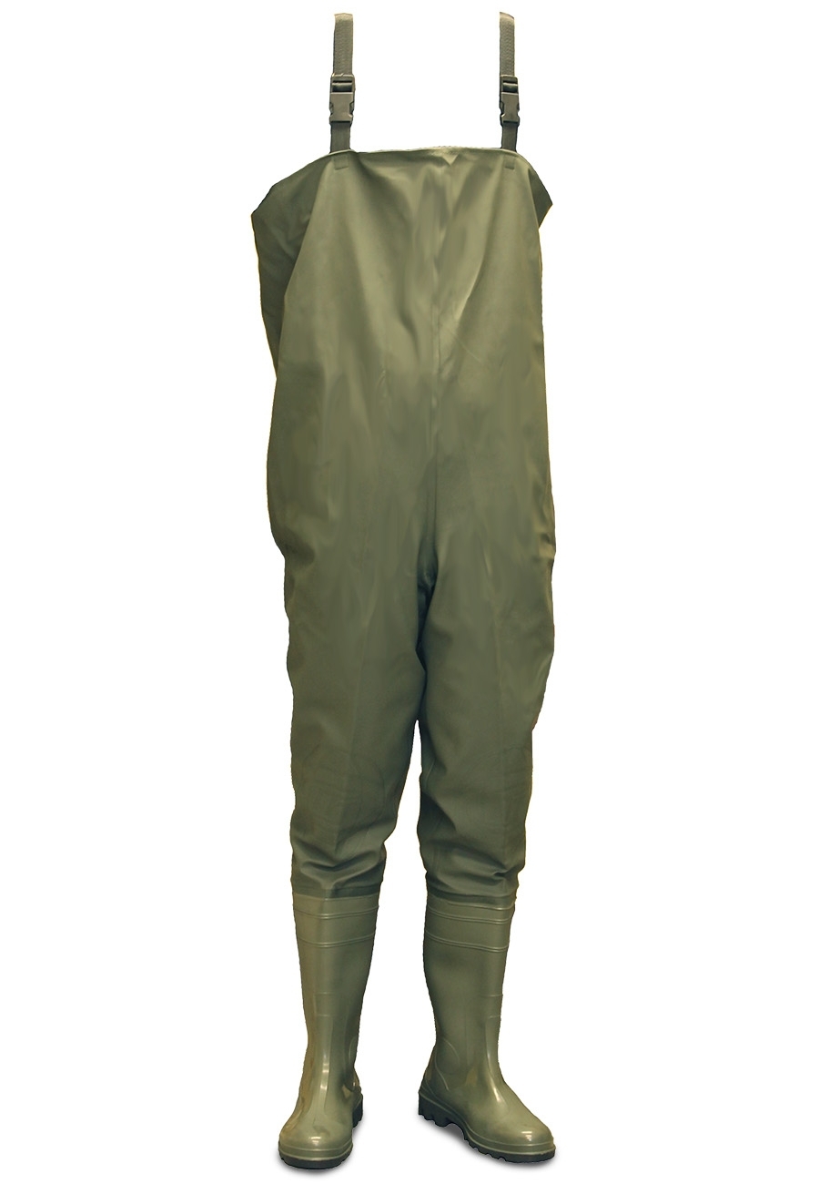 Прочный водонепроницаемый рыболовный полукомбинезон из ПВХ.