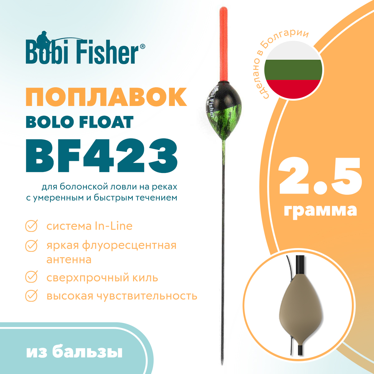 Поплавок Bobi Fisher Bolo BF423 - эталонный выбор для любителей болонской снасти. Осевой канал для пропуска лески (In-Line) является «золотым стандартом» для речной ловли: при резкой подсечке или вываживании крупной рыбы основная нагрузка ложится на леску, а не на корпус поплавка, предотвращая его поломку.