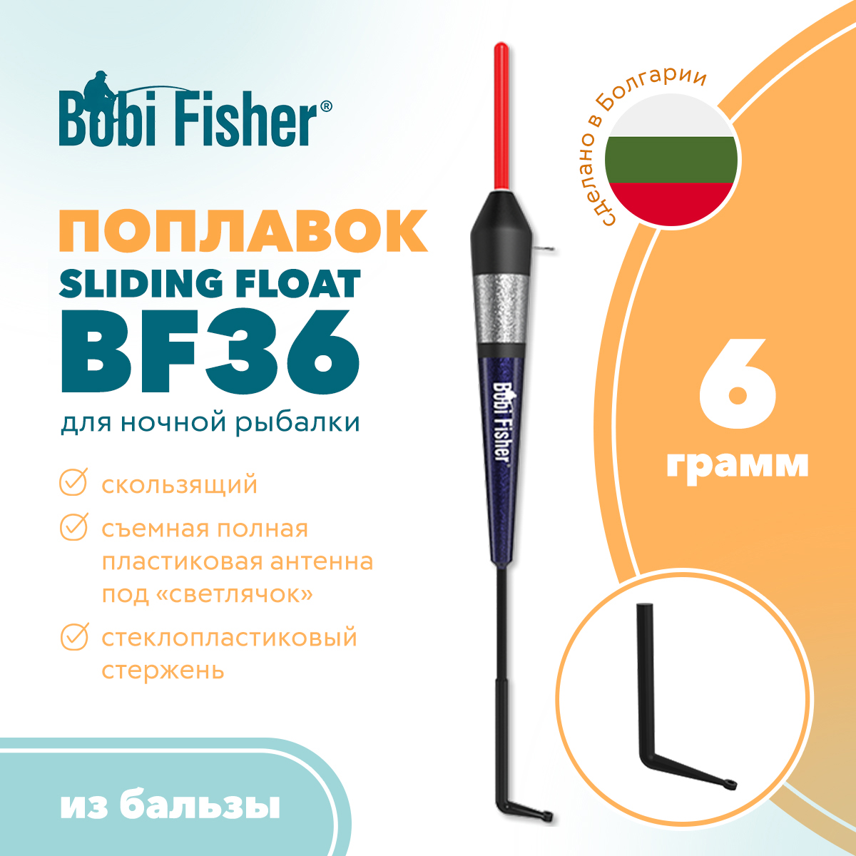Bobi Fisher BF 36 - это специализированный рыболовный скользящий поплавок из бальзы, произведенный в Болгарии. Он разработан для использования в темное время суток и оснащен креплением для химического «светлячка».