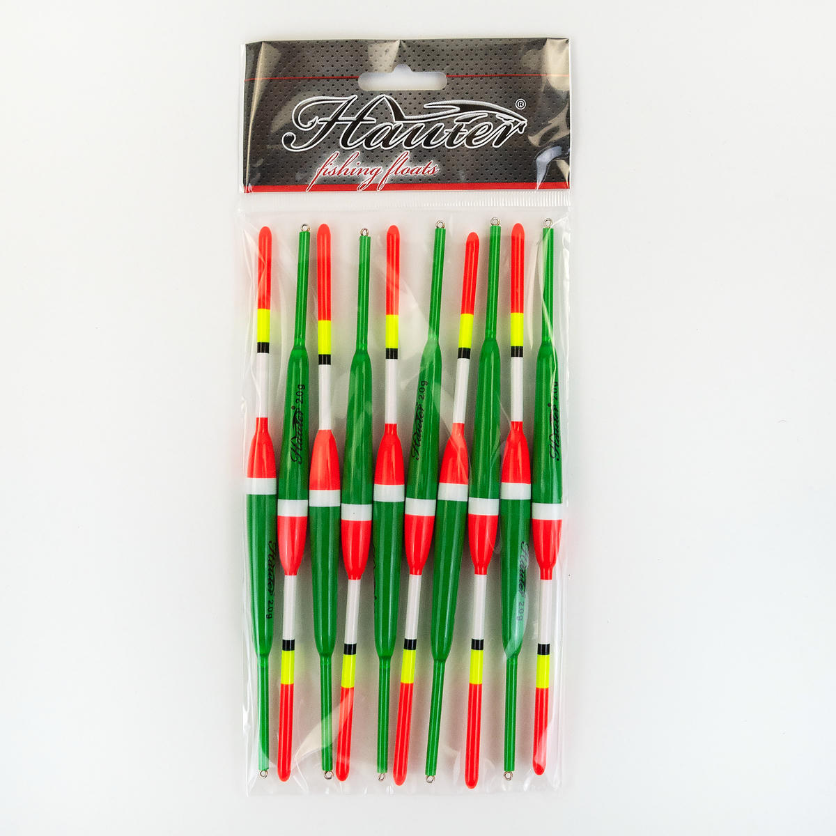 Поплавки Hauter изготовлены из эластичного пластика и окрашены яркими красками. Обладают очень хорошей чувствительностью и имеют точно выверенную грузоподъемность.  Имеют повышенные эксплуатационные свойства. Если в процессе рыбалки на поплавок наступить, то он не сломается. При повреждении краски поплавок не впитывает воду.