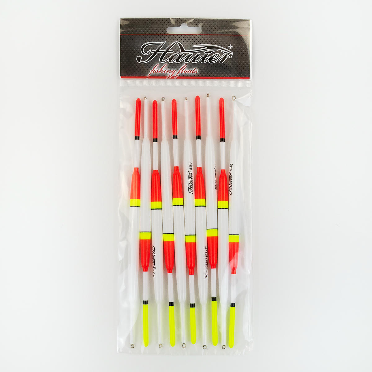 Поплавки Hauter изготовлены из эластичного пластика и окрашены яркими красками. Обладают очень хорошей чувствительностью и имеют точно выверенную грузоподъемность.  Имеют повышенные эксплуатационные свойства. Если в процессе рыбалки на поплавок наступить, то он не сломается. При повреждении краски поплавок не впитывает воду.