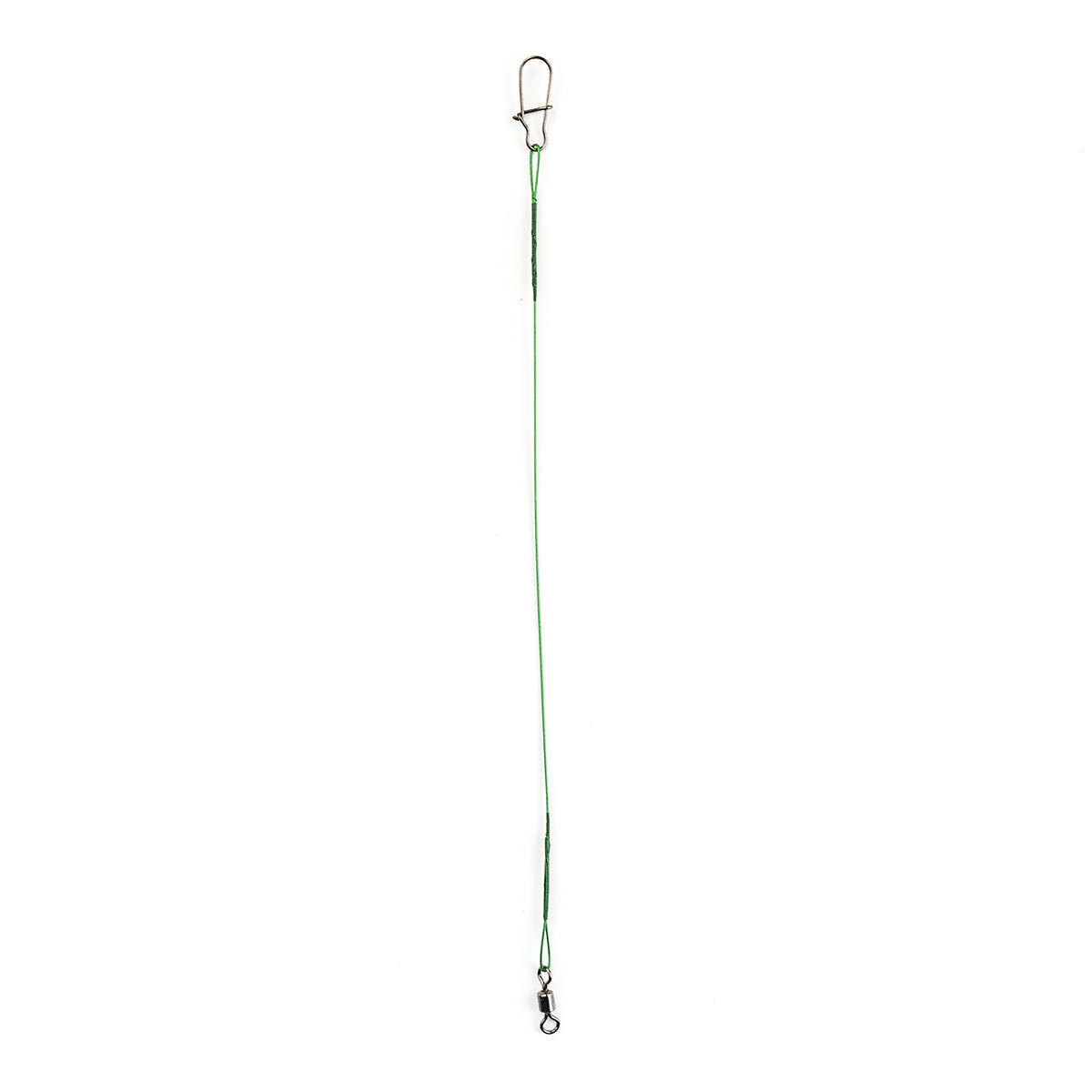 Поводок обладает высокой разрывной нагрузкой в 13 кг. Жесткая конструкция поводка обеспечивает отличную управляемость и чувствительность при ловле. Вертлюг обеспечивает свободное вращение, предотвращая скручивание лески во время ловли.